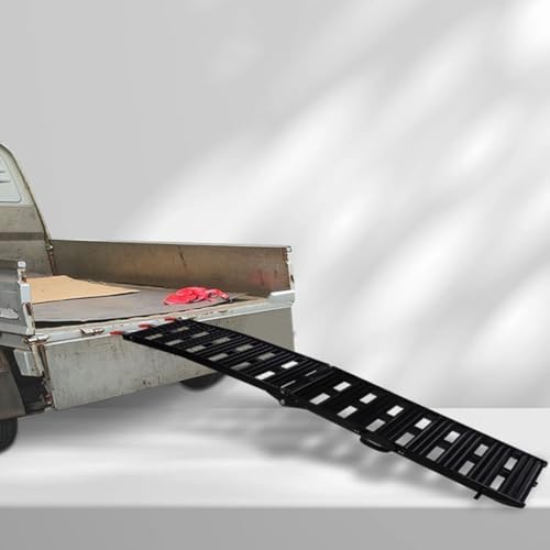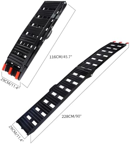 • Heavy-Duty Loading and Unloading Ramp: This Truck Ramp measures 90 x 11.4 inches (228 x 29 cm) when unfolded and 45.7 x 11.4 inches (116 x 29 cm) when folded. Designed for convenience and safety, it supports a maximum load capacity of 700 lbs, making it ideal for transporting equipment and vehicles. Perfect for trailers, trucks, and garages.