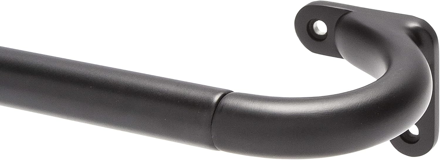 Product Description The Kenney 3/4" Curved Wrap Around Room Darkening Curtain Rod is designed to wrap around your window frame to block window sidelight, reduce outside noises and drafts, and enhance privacy.The brushed nickel finished steel telescoping rod adjusts from 28 inches to 48 inches in length to fit a variety of window sizes and projects 3.57 inches from the wall. The included modern style mounting brackets install quickly and easily. Use in your kitchen, bedroom, dining room, or living room to hang light to medium weight curtains. It is ideal for hanging curtains with grommets, back tabs, or pockets, but can also be used with tab tops or clip rings. Room Darkening Rod Set Includes: one curved wrap curtain rod, two mounting brackets, four screws, four drywall anchors, and installation instruction. Set Contains: Curtain Rod and Mounting Hardware
