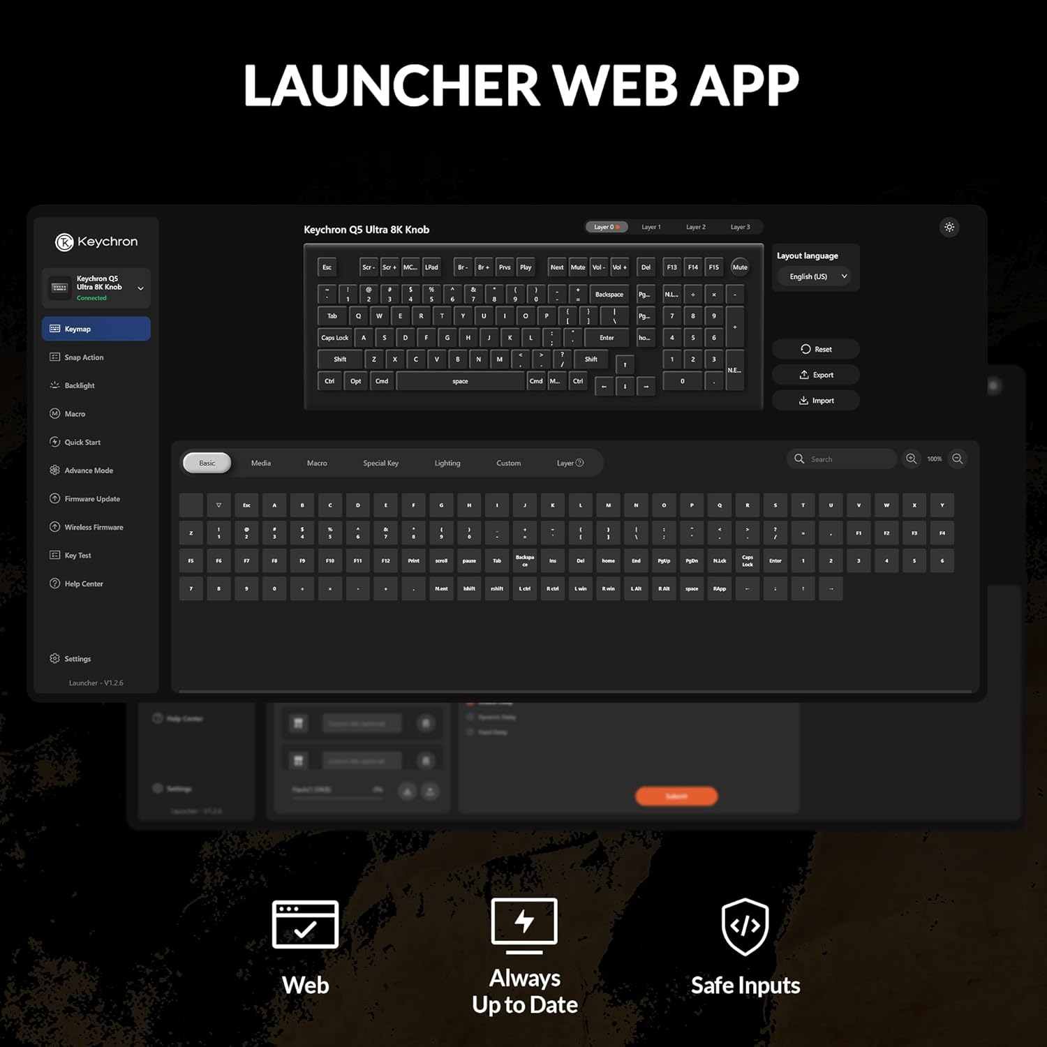 • Multi-OS Compatibility: Designed for a seamless experience on both Mac and Windows, the Q5 Ultra 8K features a system toggle and an extra set of custom keycaps for both macOS and Windows. Save two distinct layouts, one for each system, for a seamless experience