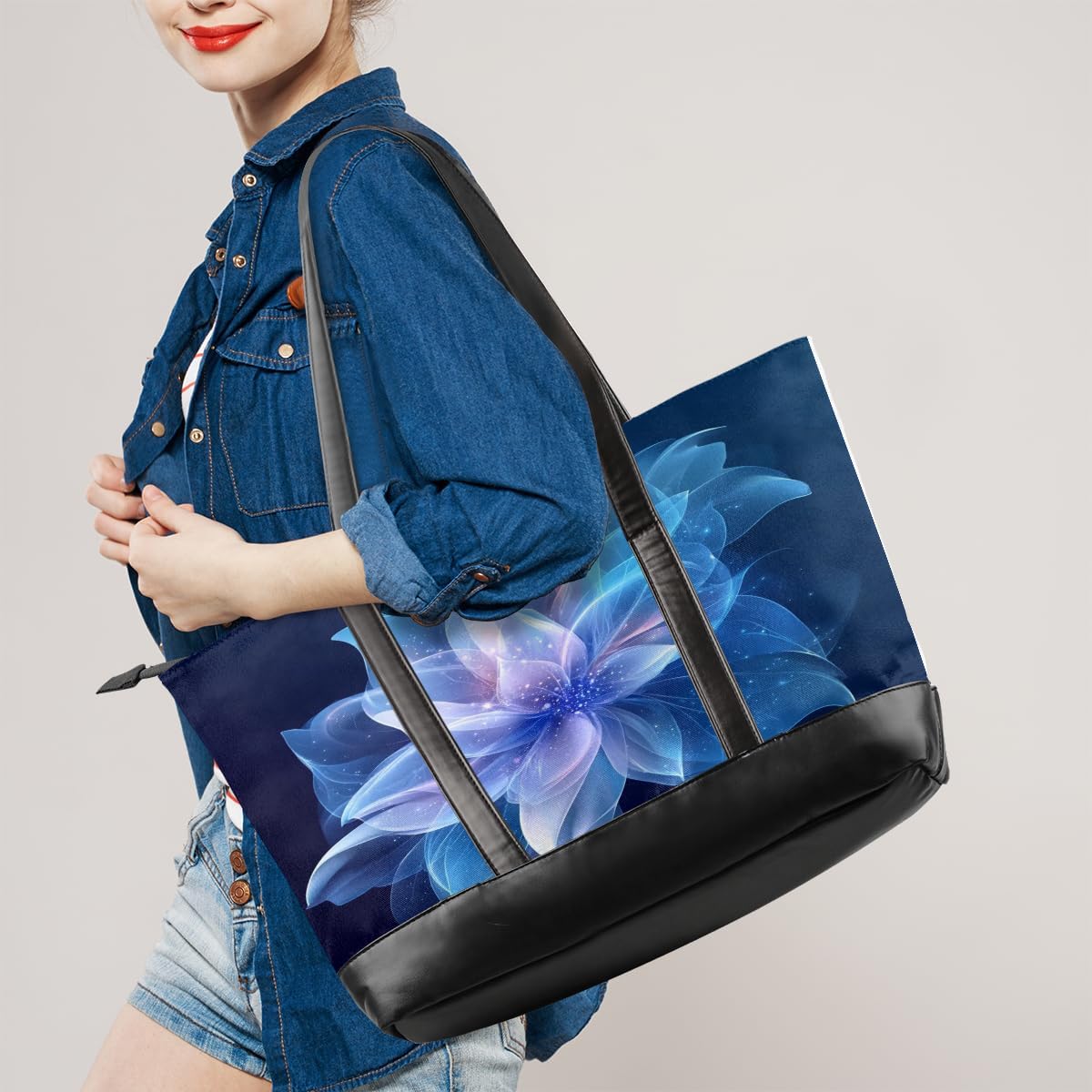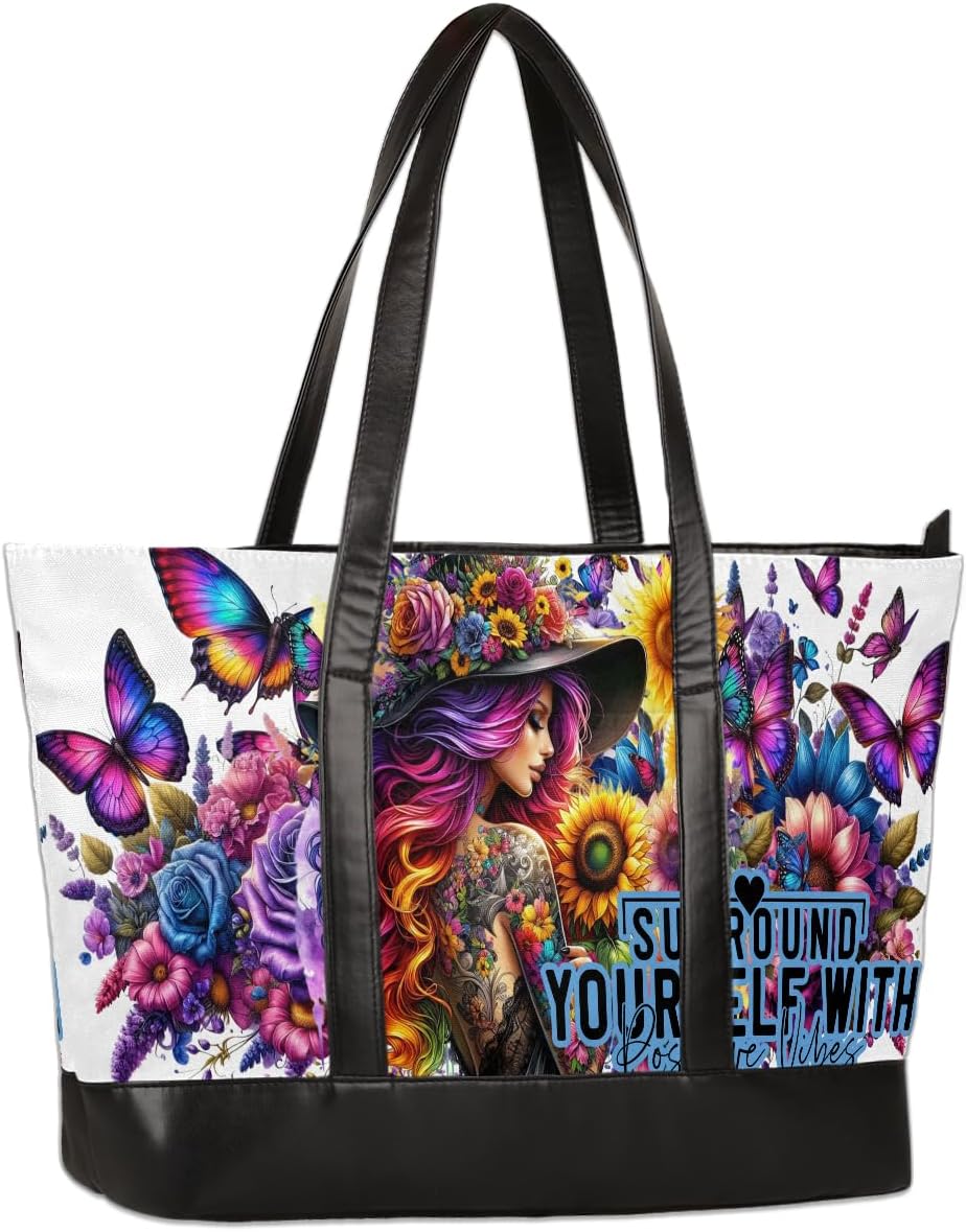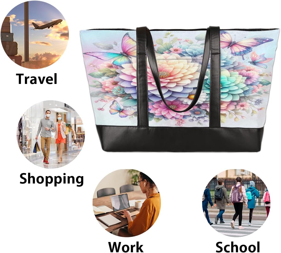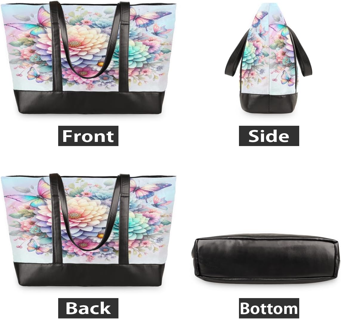 Fashion Laptop Tote BagMaterial: Canvas & PU LeatherColor: Custom patternSize: 14.6"x5.1"x11.8"/37 x 13 x 30cmStrap: 11.4 in/29cmPacking: 1 pcs computer bagPractical Design:1. Top zipper closure for whole bag, easy get and safety for all goods, also protect the items in rainy days.2. Long Shoulder strap,comfortable fit over Shoulder and no sliding.3. Durable bag bottom for the extra protection for the wear and tear.Occasion: Work, School, Shopping, Meeting, Business trip and Daily use. Large Capacity with Pockets and Compartments Design:It has multiple compartments,can take any items you want, such as 15.6 inch laptop , iPad, power bank, pen, umbrella, water cup, etc.Anti-Scratch Material:Make of high quality canvas and pu leather,no only waterproof and durable, but also easily cleaned and fashionable.Perfect Work Tote for Women Ladies:This canvas laptop tote is perfect gift for teacher, nurse, mother, gramma, or anyone else on your list for Christmas, birthday, or 'Just Because"! Great weekend, travel, working, school, shopping, gym, hiking, yoga, swimming, beach etc.Notes:-Due to manual measurement, please allow 0.1" -0.2" errors.-Due to the color difference, the picture may not reflect the actual color of the item. We guarantee that the style is the same as shown in the picture.If you have any questions, you are welcome to contact us and we will work hard to achieve your satisfaction!