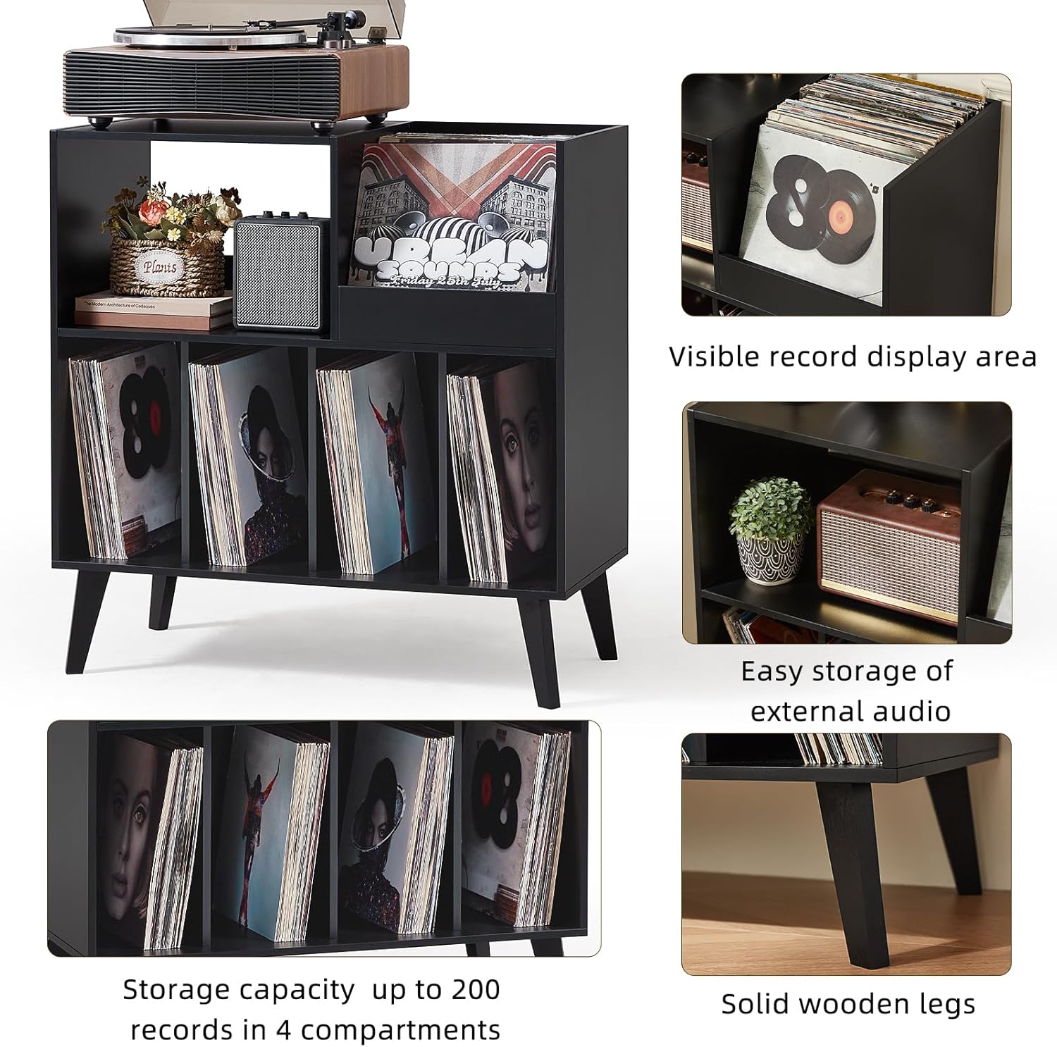 | Additional Features | Hollow back panel for audio equipment connection, tough rubber wood support legs, large storage capacity for up to 300 vinyl records |