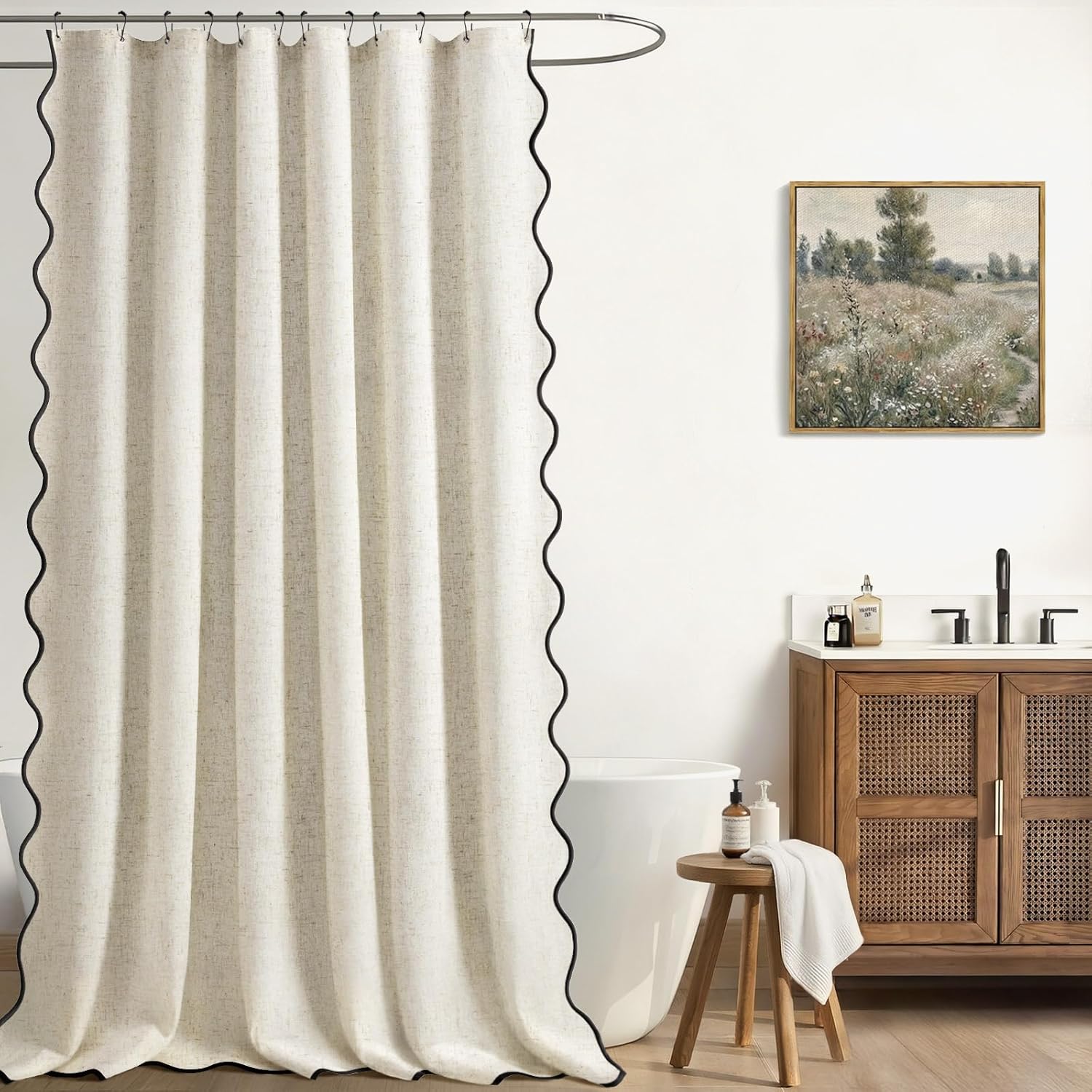 Cute Scalloped Shower Curtain Linen Textured