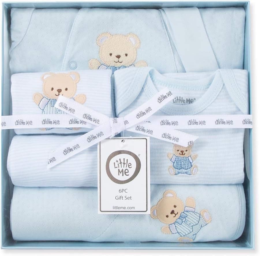 The Little Me layette set girl, layette set boy, baby girl layette set, layette set neutral is perfect for gifting on special occasions like baby shower gifts for girls, baby shower gifts for boys, gender reveal gifts, labor and delivery essentials, birthdays, or holidays. Let parents focus on snuggles and bonding while you provide stylish new born baby essentials must haves for their little one. Our beautifully packaged baby gift sets comes with a footie and cap, an adorable baby onesies, a 3-piece bib and burp set, and a swaddling baby blanket—all the infant essentials. This is a clothing set for baby boy or baby girl made with ultra soft 100% cotton that is gentle on baby’s delicate skin. Then just machine wash cold and tumble dry low—less stress means more snuggles. Made for milestones and messes! Little me baby girl clothes and little me boys baby clothes, gender neutral baby clothes, gender neutral baby gift celebrates those fleeting years when newborns transform into young toddlers. Available in different sizes for newborn boy clothes layette, baby girl layette sets 0-3 month, and 6 month baby essentials. Our baby gifts abide by the belief that babies should always be comfortable, snuggly and safe, free to do what they do best: play, sleep and thrive. Join our journey to more eco-friendly processes for more sustainable garments. By 2026, we aim to source 50% of our cotton through the Better Cotton program—supporting water-efficient farming practices that benefit both farmers and the environment.