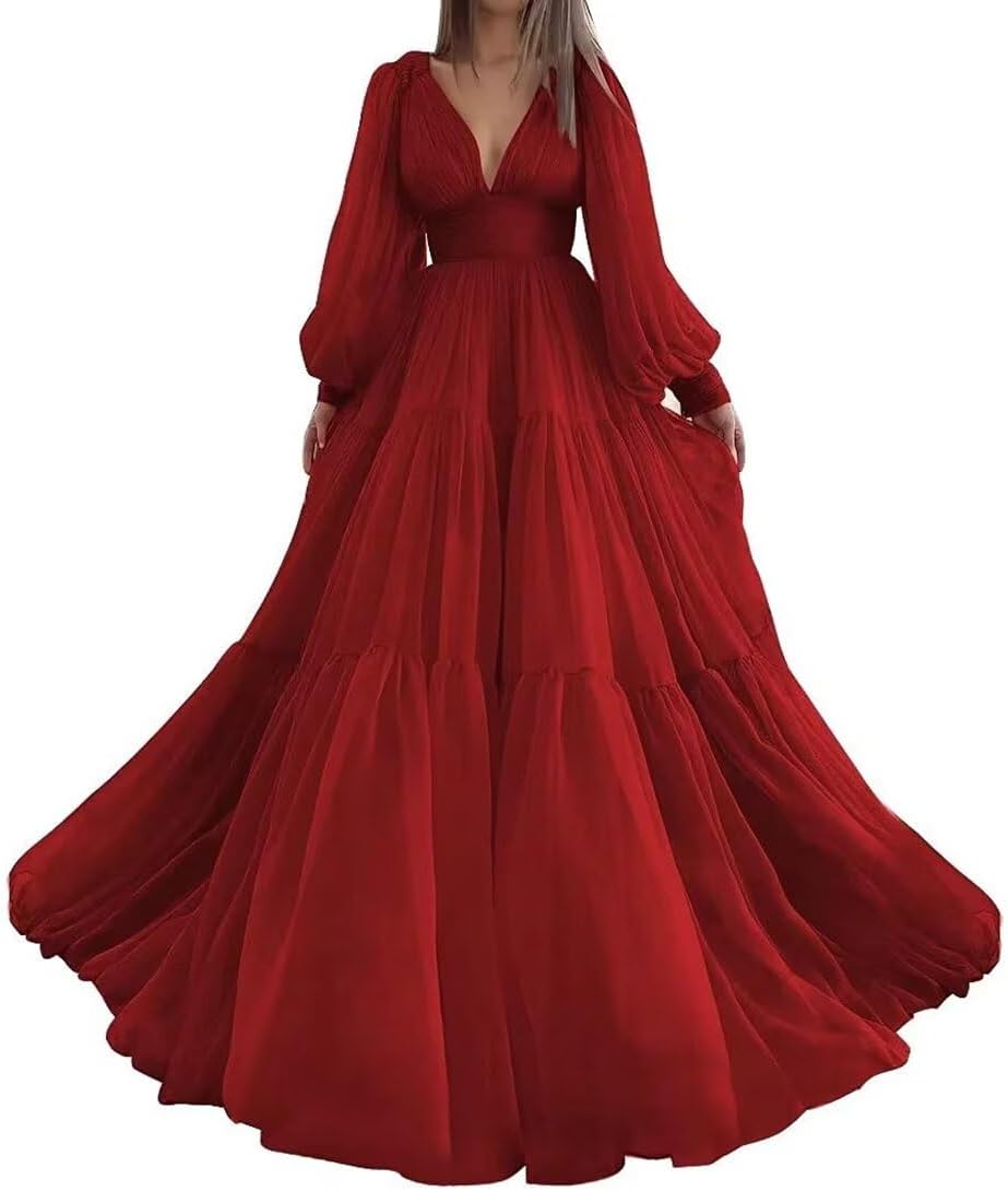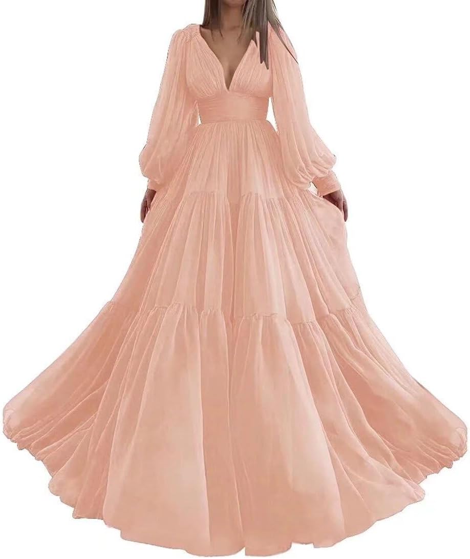 | Fabric Type | Tulle Long Puffy Sleeve Prom Dress |