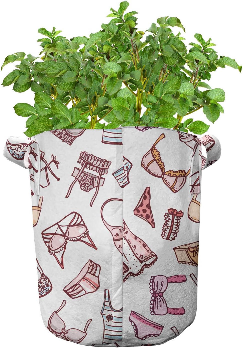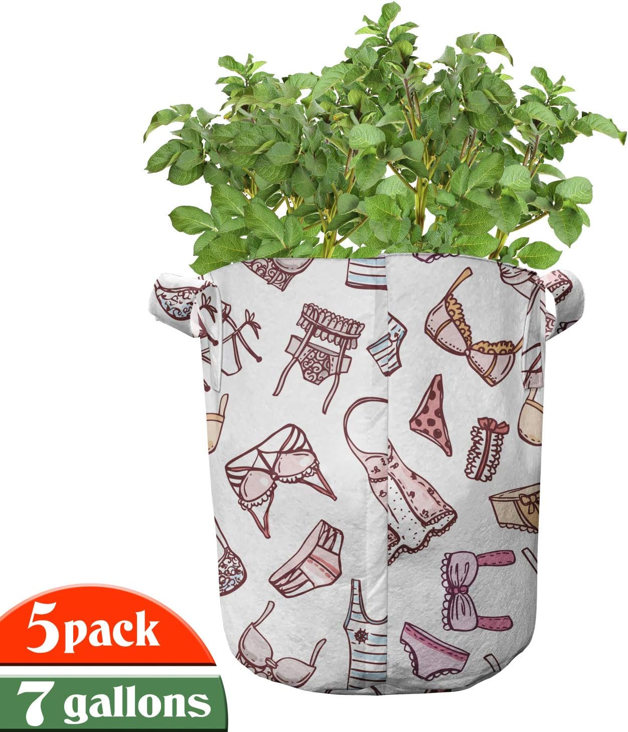 5 PACK - Printed grow pots. Size of the bags: 13.7" W x 12.6" L. 7 Gallon. Easy to move around. MADE FROM - High quality 100% thickened non-woven polyester fabric. Perfect for container gardening. FEATURES - Heavy-duty handles. Stain & water-resistant. Can be used up to 3 years. No toxic dyes. INDOOR GARDEN - Grow a variety of plants like tomatoes, peppers, various greens, root vegetables. PRINTED - With state of the art digital printing technology. Long-lasting bold colors & clear image. Do you want to learn the decorative way to grow healthy plants? The answer is; these printed fabric pots pack of 5! This portable fabric bag is made from nonwoven polyester to grow any kind of plant. These bags are environment-friendly and allow your roots to breath. With its smart design, there is more room to grow for your flowers, plants, beans, garlics, patatoes, salad leaves, eggplants, peas, onions, beetroots, tomatoes, mint, sage, herbs, strawberries, cress, chilies and peppers. Allows your plant's roots to breathe. Develop strong roots and keep them well with these printed bags. Move your bag full of soil and plants with large sturdy handles; minimalize the risk of transplant shock. Keep your plants warmer in the winter and cooler in the summer. Improve overall root structure and provide better use of water and nutrients. Besides being that much useful, these planting bags are also decorative! Add color and style to anywhere you like with thousands of different patterns. As well as decorating your garden, you can create a stylish accent for indoor use, too. Our portable fabric grow bags are washable, easy to clean for reuse. Save money and save your plants by these fabric pots. The digital images we display have the most accurate color possible, however due to differences in computer monitors, we cannot be responsible for variations in color between the actual product and your screen.