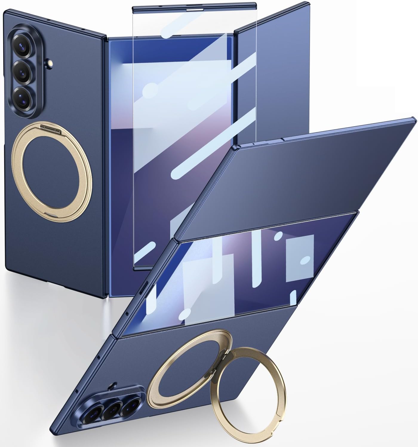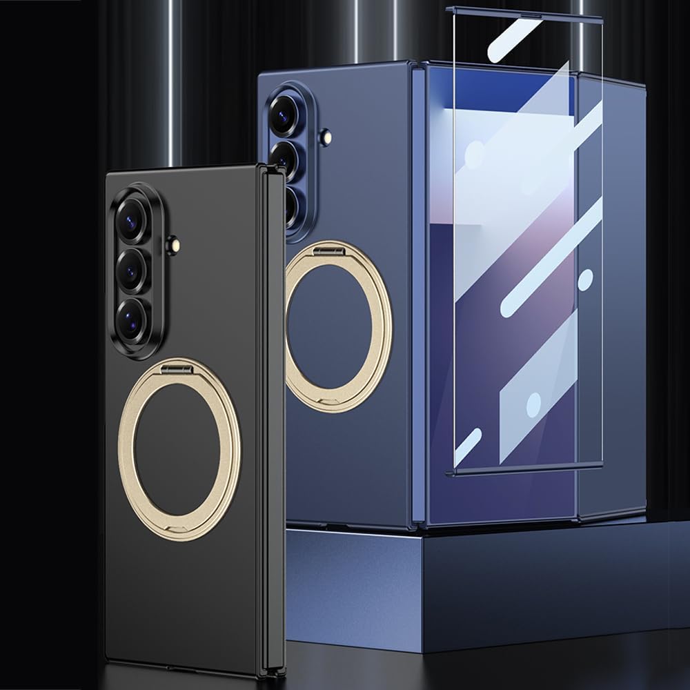 Magnetic Case for Samsung Galaxy Z Trifold with Built-in Screen Protector and Rotating Ring Kickstand, [Compatible with Wireless Charging] Slim Hard PC Shockproof Cover for Galaxy Z Trifold