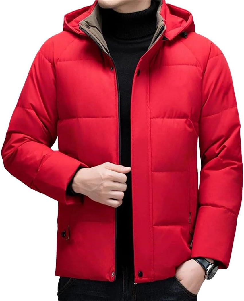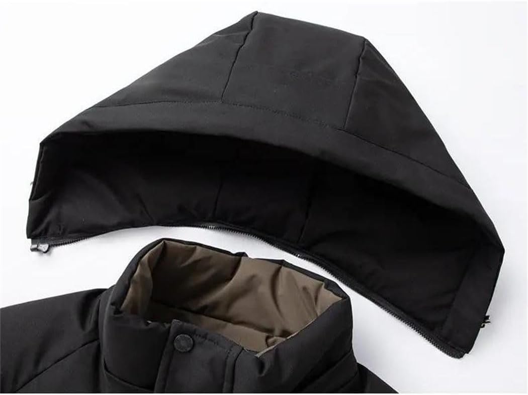 This collection of men's winter jackets offers insulation options for cold weather conditions. The hooded designs provide coverage and warmth for various outdoor activities and daily wear.Insulation Types: Features duck down filling and cotton padding materials. These insulation methods provide thermal properties for temperature regulation.Style Variations: Includes puffer jackets, parkas, and casual coat designs. The jackets feature different silhouettes from slim to relaxed fits.Closure Systems: Utilizes zipper fronts and button closures. Some styles include detachable hood components for versatility.Length Options: Available in short and mid-length designs. The jackets provide torso coverage while allowing freedom of movement.Material Composition: Made from nylon, polyester, and cotton fabrics. These materials offer durability and weather resistance.These jackets can be layered over sweaters and base layers. The collection includes options suitable for both casual wear and outdoor activities.