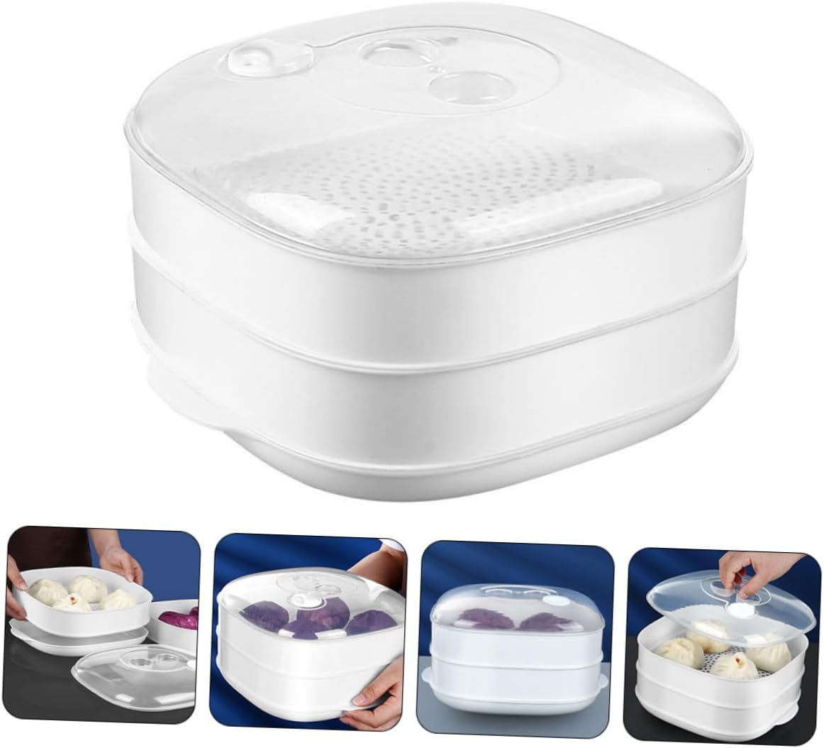 Package List 1 x Set of Two-layer Steamer Features -Color: White microwave steamers -Size: 25.00X22.50X14.50cm/ 9.82X8.84X5.70inch Steamed Bun Steamer -Material: Food Grade Plastic steamer baskets for cooking dumplings -Product Info:Double-layer steamer -It can also be stored in the refrigerator, which is convenient and practical and essential for home use steamer for microwave. -It can be put into the microwave to heat steamed buns, steamed buns, etc. without losing water steamer cookware. -Used for cooking vegetables, meat, fish or heating food microwave steamer. -With good toughness and no deformation when it is squeezed any situation steamer. -Transparent cover design, heat preservation and , more convenient for viewing food Two-layer Food Steamer.Goods Informationfood steamer cooking The appearance is also very beautiful, and it matches well with other tableware in your house.Double Layers Steamer Are you still worried about not finding a suitable steamer? Our product is made of food grade plastic material, which can be used for a long time and is not easily damaged