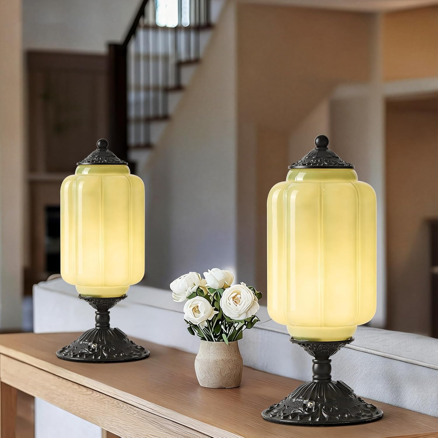 • Gentle, Eye-Friendly Light: Featuring a milk green glass shade that spreads soft, even illumination without harsh glare. Perfect for reading, relaxing, or creating a calm atmosphere in bedrooms, living rooms, or hallways.