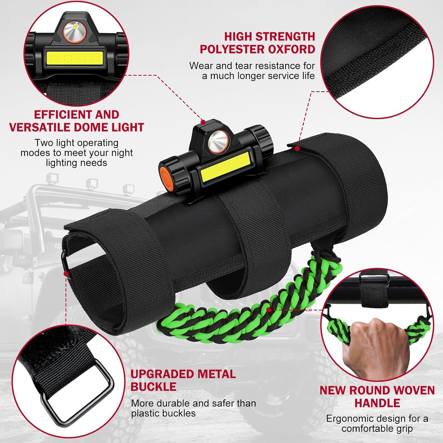 | Included Components | 2 x Wrangler handles, dome light( including USB cable) |