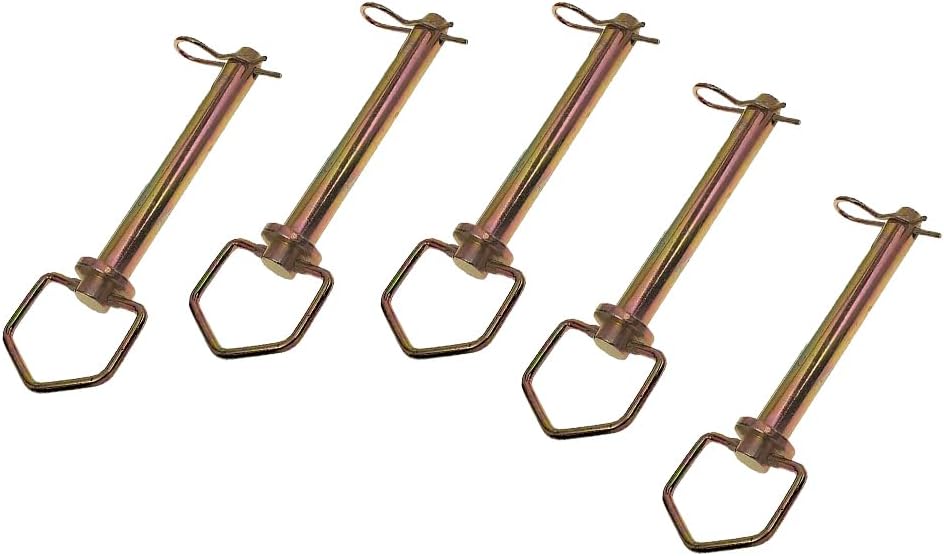 Pack Size: 5 PackExperience effortless Trailer Hitching with the Swivel Handle Hitch Pin. This must-have accessory makes hitching easy and simple, do not forget strong and stable. Eliminate your problems and welcome better trips.Measurement: The diameter of each pin is 1", with a usable length of 6-1/4". It provides stability for your trailer hitch setup.Easy-to-Grip: Our Swivel Handle Hitch Pin is designed to be as user-friendly as possible. The spring wire handle lets you put it in or pull it out with ease even if you’re wearing gloves, thanks to its comfortable grip.High-Strength: These 1" stainless steel trailer hitch pins are made tough so they can cope with you and all your heavy-duty towing needs.Customizable Sizes for Your Needs: Our Swivel Handle Hitch Pin comes in different sizes to fit various trailer hitch configurations and ensure that it will match your requirements. Explore our range, if you want a smaller size for close places or an increased one for more protection.