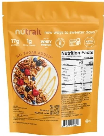 Honey Nut Protein Granola gives you energy that lasts all day log with 17g of protein per 2/3 cup serving 17g protein nut granola with no artificial flavors, dyes, or sweeteners Perfect crunchy smoothie topper, with milk for breakfast, or by the handful!