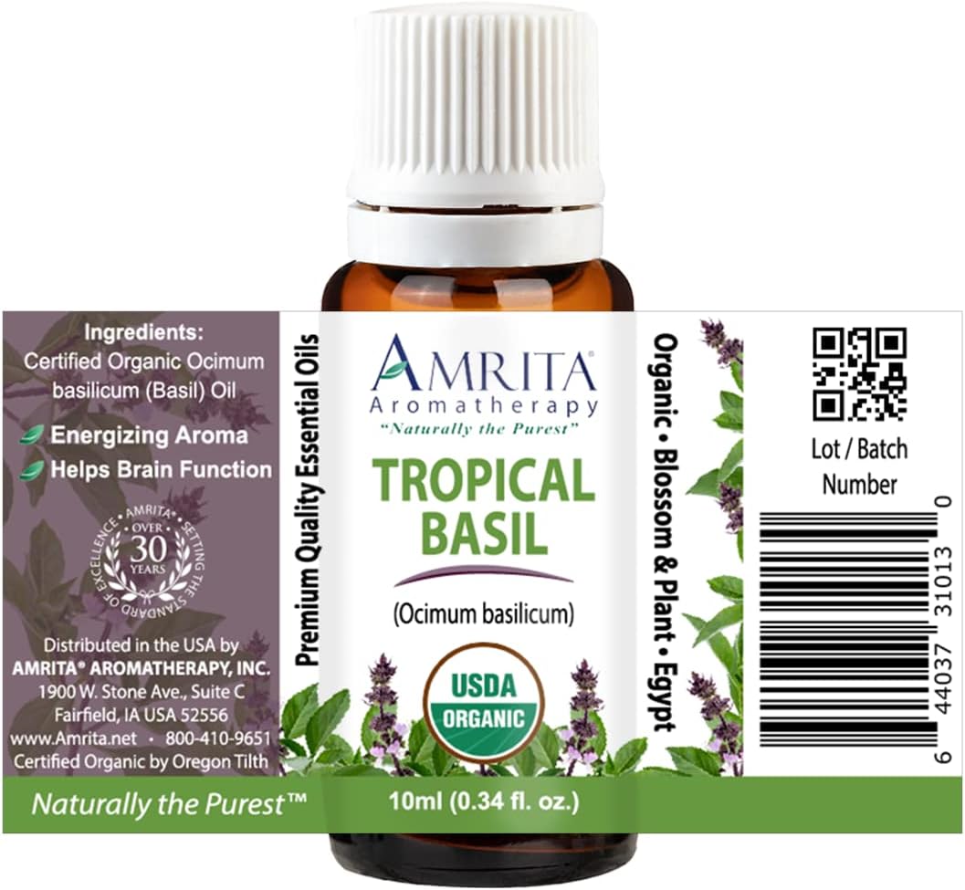 Amrita Aromatherapy Organic Tropical Basil Essential Oil.