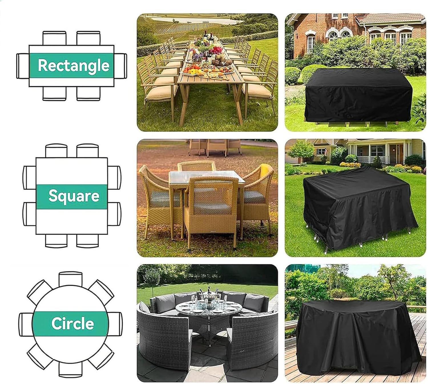 We are a manufacturer of outdoor sofa covers, if you have different size requirements, you can contact us by email, we can customize any size outdoor sofa covers for you!. Easy-use & Sturdy: Elastic hems at the bottom of four corners keep the cover secured in high winds and severe weather. Waterproof & Other Use : heavy duty outdoor table cover keeps your outdoor furniture dry and safe, also extends the life of their. 420D Oxford Cloth Made of high quality 420D polyester oxford complex with a protective waterproof backing.ith double-stitched seams, Double-stitched seam makes it more durable.The tear resistant fabric gives full protection for your patio furniture.keep your patio furniture table, chair, sofa and other outdoor Storage box away from sunshine,rain,hail,snow,dust and so on, makes they always look like new. If the wind is too strong, it is better to put some stones or heavy objects on outdoor table cover, prevent the cover being blow off. As the furniture does not flat, the low points of cover will collect water and debris. It will reduce the service life of cover over time. We suggest to put some round things to raise the cover up, so that the water and debris can be flow down through the line. No machine wash or dry clean, please wipe with a soft brush or cloth. Please measure the size of your item before buying. 1 x Rectangular Furniture Cover 1 x Storage Bag Color: Black"" rectangular patio table cover,rectangular patio furniture covers,outdoor patio table cover,outdoor table covers,outdoor waterproof furniture covers,extra large outdoor furniture cover,outside table cover weather proof,outdoor patio chair covers
