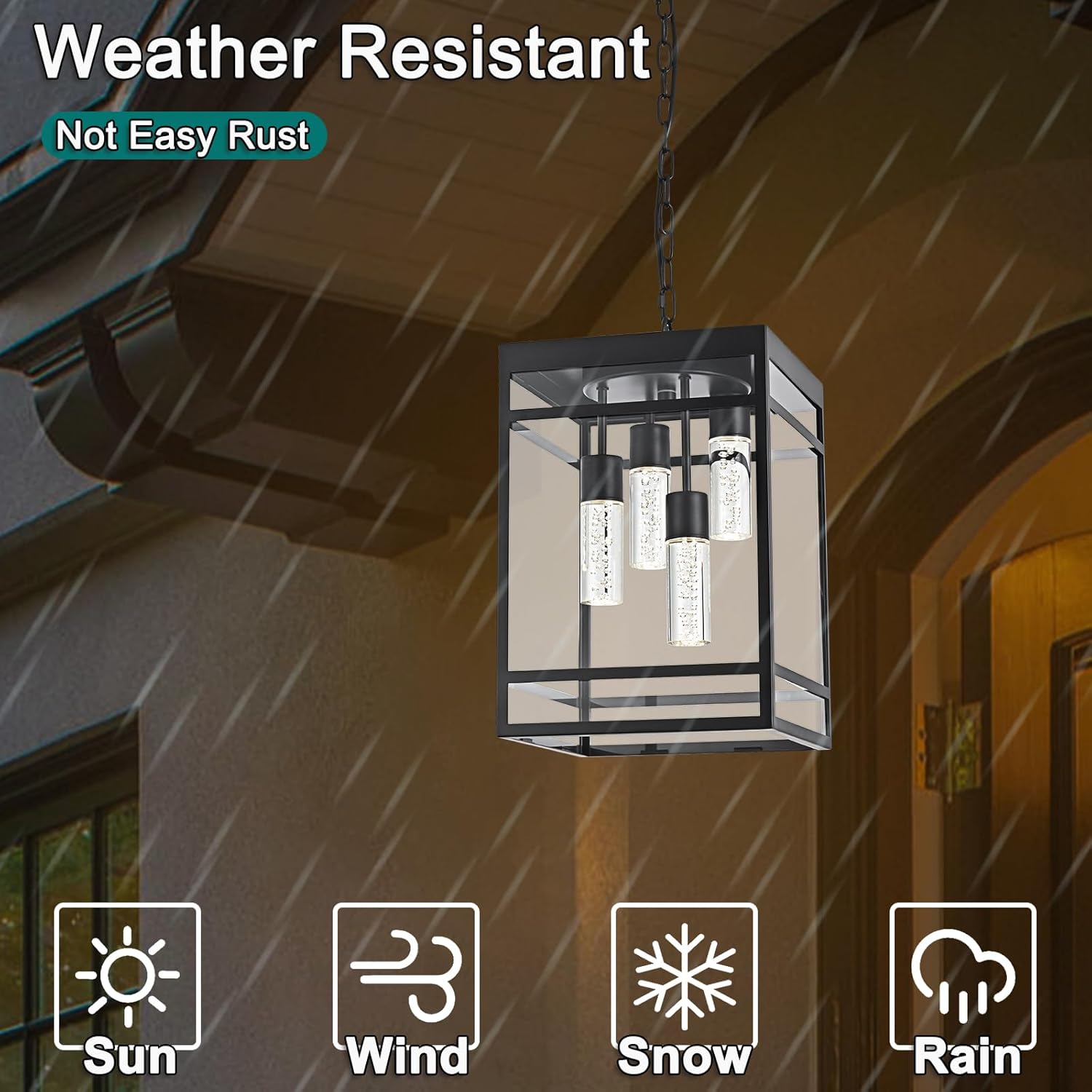 Large Outdoor Pendant Light Black Hanging Lattern for Garage Entryway Patio Front Door