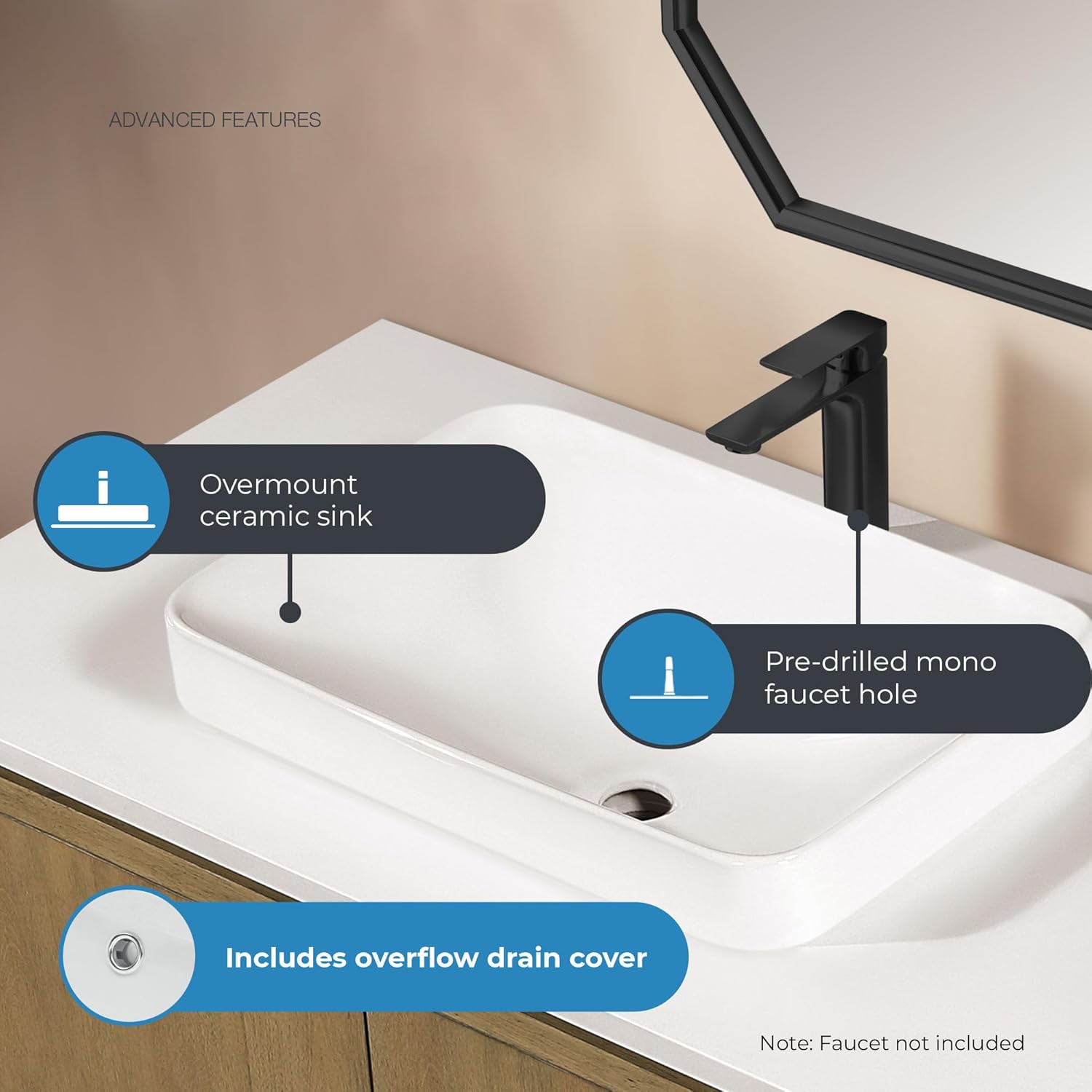Making a big impression thanks to its overmount basin, the Heidi vanity by OVE leans into modern trends and stands out from the crowd. Crafted with a rounded-corner cabinet and countertop, making it a stylish choice for transitional bathroom spaces. Featuring a Light Brown Oak medium-stained wood finish and white quartz top with offset sink, this vanity will bring standout style to your main bathroom or guest bathroom. Storage includes a double-door cabinet with an adjustable interior shelf plus three drawers that keep your space organized and clutter-free. Two sets of included hardware in brushed gold (preinstalled) or matte black add a modern finishing touch.