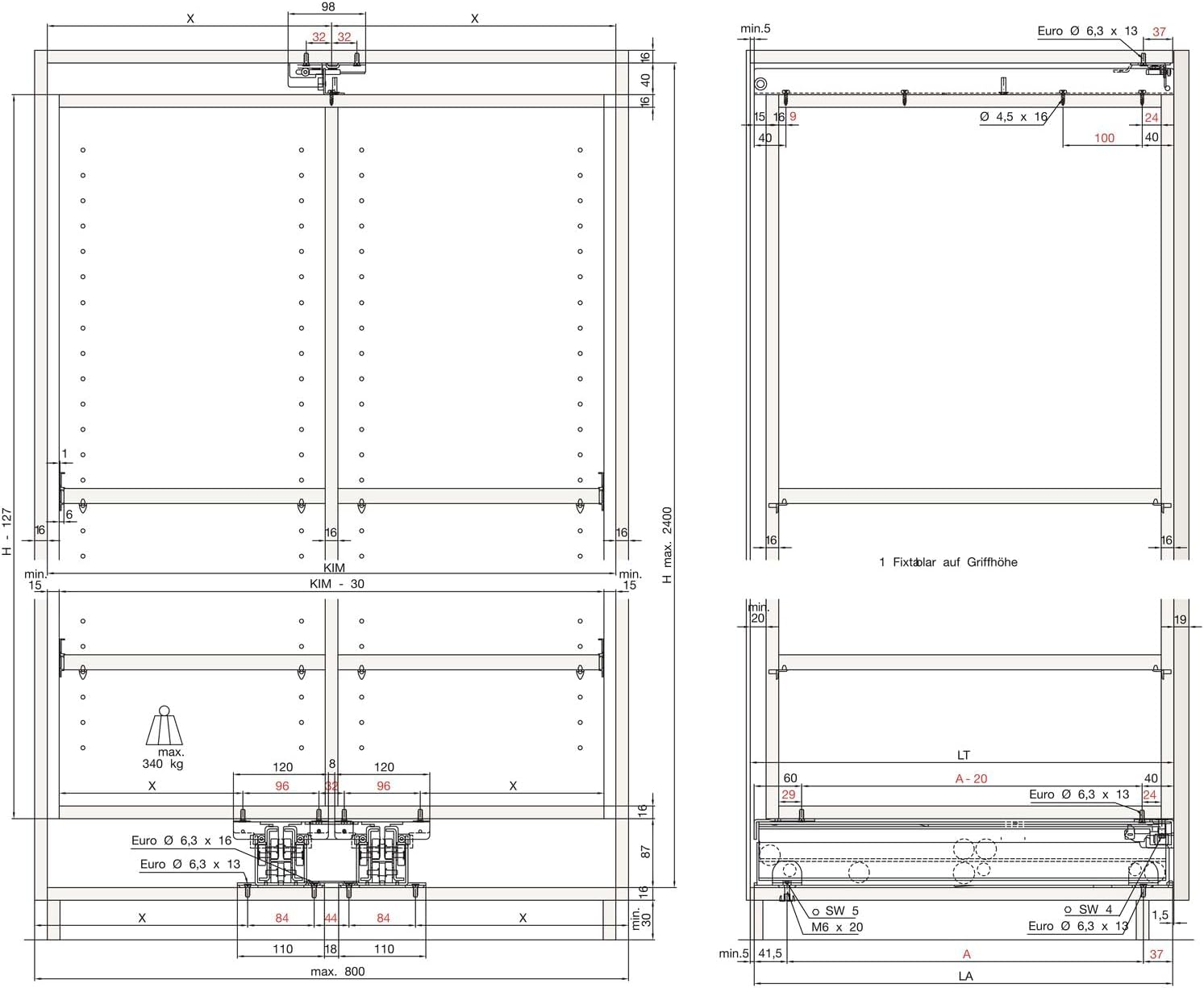 PEKA -FORTE cabinet extension length 980 mm, depth 985 mm, steel light grey RAL 7035 - - - tall cabinet drawer for wooden constructions - floor mounting - load capacity 170 kg (340 kg with 2 pull-outs and connection set) - - optional with damping system - - differential extension - - maximum body height: 2200 mm (with 2 ExtractMaximum body width: 600 mm (with 2 pull-outs up to 800 mm) - installation loss at top: 40 mm - installation loss at bottom: 87 mm - - length: 980 mm - material: steel light grey RAL 7035 - pull-out path: 952 mm - load capacity: 17. 0 kg 0 kg - Dimensions A: 900 mm – Installation depth: 985 mm