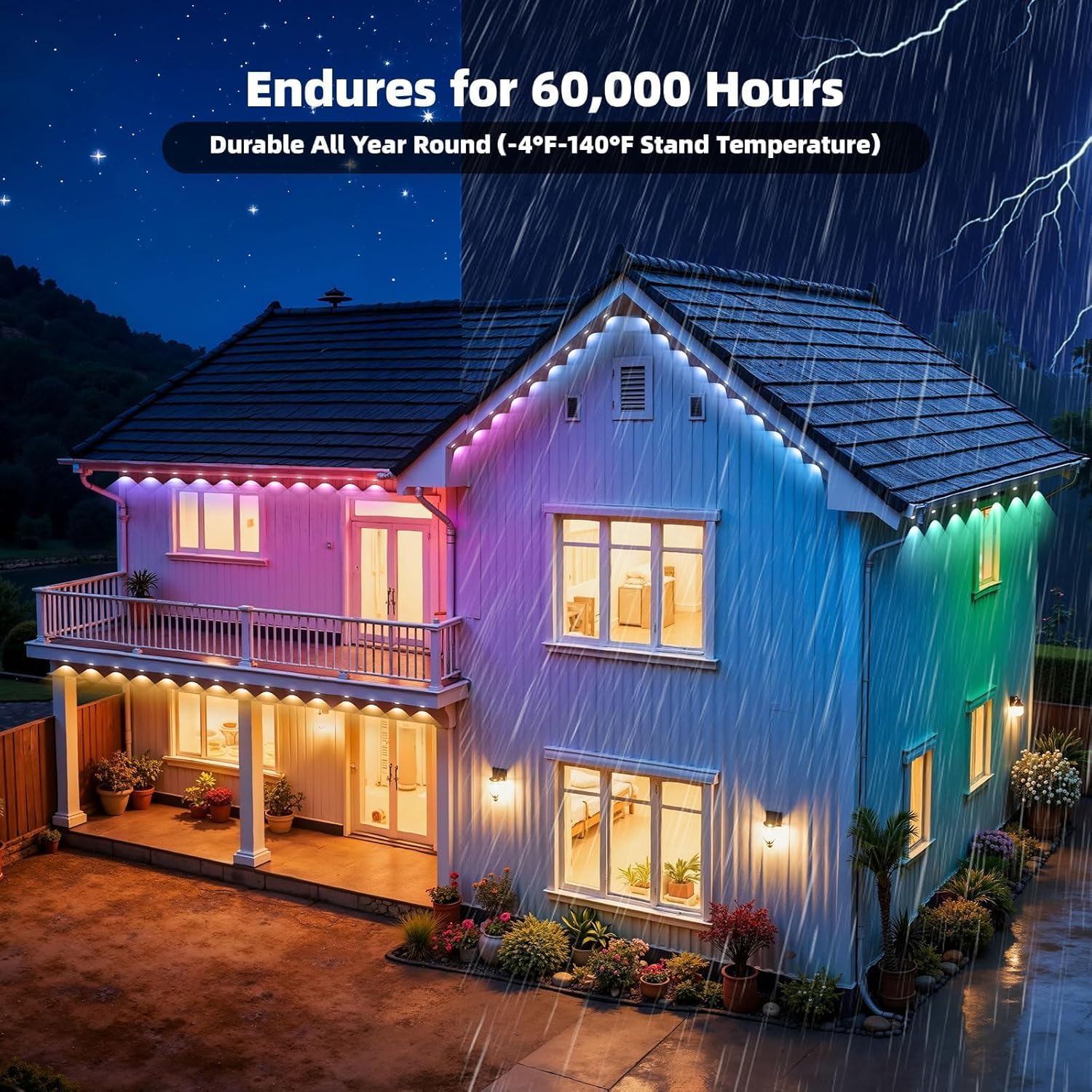 | Additional Features | 16 Million Colors, Color Changing, Individual Control, DIY Customization, Adjustable Brightness, 54 Dynamic Scene Modes, Music Sync, SmartLife App & Voice Control, Remote Control, Timer, Automatic On/Off, Easy Installation, IP67 Waterproof, Energy Efficient |