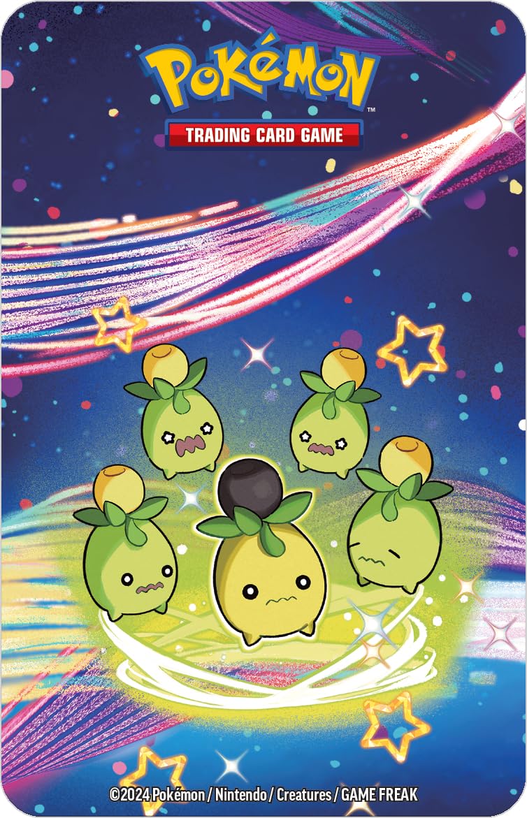 | Included Components | 1 sticker sheet, 2 Pokémon TCG: Scarlet & Violet—Paldean Fates booster packs, A Pokémon art card showing the art from this Mini Tin—you can collect a nd combine all 5! |