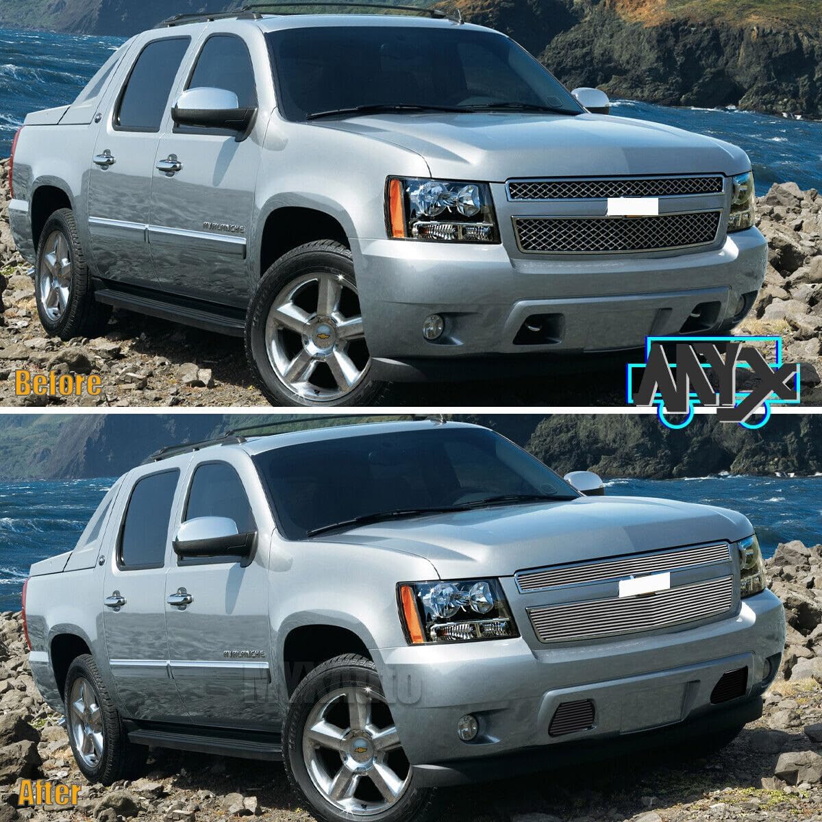 Polished Grill Fits 2007-2014 Chevy Tahoe Suburban Avalanche Aluminium MainUpper Front Billet Grille Insert - Aluminum Horizontal Billet Grille Insert[Fitment]*2007-2014 Chevy Tahoe Suburban Avalanche Not For Z71 Model Tow Hook Must be Removed [Material] Aluminum[Color] Mirror Polished[Style] Horizontal Billet[Position] Main Upper[Pieces] 2 pcs[Installation] Bolt Over/Overlay/Bolton (Drilling Required)ITEM FEATURES:Air craft grade 6061-T6 aluminum solid billet grille inserts can protect the front end of your vehicle. Corrosion resistant aluminum billet grilles in polished mirror finish chrome color. Can enhance the style or function of the original stock grille. Bar width: 3.5mm ~ 4.0mm (1/8in ~ 5/32in). Sleek aluminum billet grille inserts. This Billet grille inserts make your vehicle more outstanding on the road. High quality material for long last. Grille insert only, logo or emblem, frame or shell is NOT included. Hardware and instruction are included.ABOUT USMYXAuto manufactures a wide selection of over 2,000 custom grilles from classic billet grilles to the latest trend of wired mesh grilles for cars, trucks & SUV. we are professional auto parts designer and manufacturer.We are here to deliver customers the best possible product at the most affordable price and create the best possible customer experience. As an MYXAUTO's customer, you can rest assured that your satisfaction is our top priority. We hope you have a pleasant shopping experience with us. Thank you!