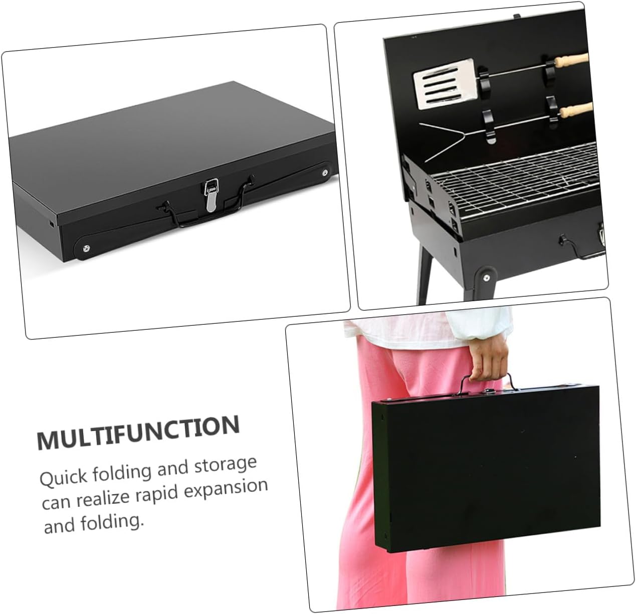 Package List 1 x set of BBQ grill Characteristics - Size: About 44.00X27.00X47.00cm/17.29X10.61X18.47inch. - Color: Black. -Product Info:Portable barbecue stove - Material: Iron. - Each part can be disassembled for easy cleaning and maintenance grill. - Box type barbecue grill with handle design, portable and suitable for outdoor use portable stove grill. - Multiple heights can be adjusted to choose the right grill height picnic barbecue stove. - Suitable for outdoor camping, fishing, climbing, etc. Mini barbecue stove foldable campfire stove. - With handles, it can be folded, easy to carry and more convenient picnic grill.Goods Descriptionportable bbq Both sides of this barbecue grill make the airflow well.barbecue grill Comes with handle, fold the legs and it is ready to go.foldable campfire stove Easy to store and to carry to anywhere you want.Camping Barbecue Stove Made of thickness material, solid and resistance, durable and