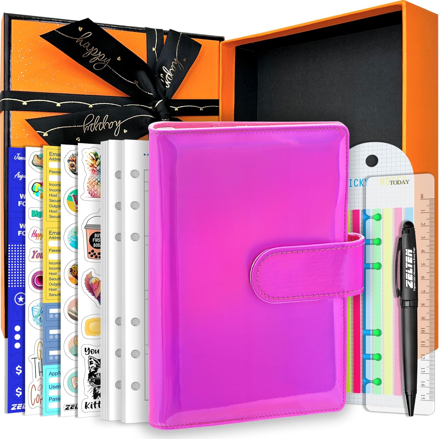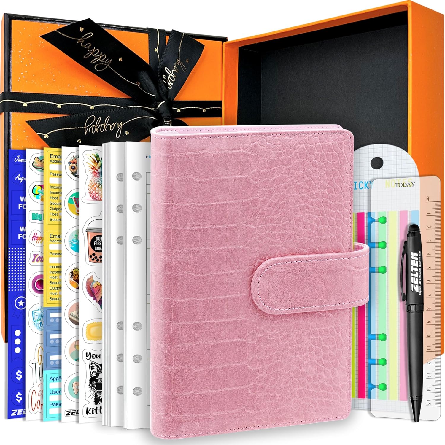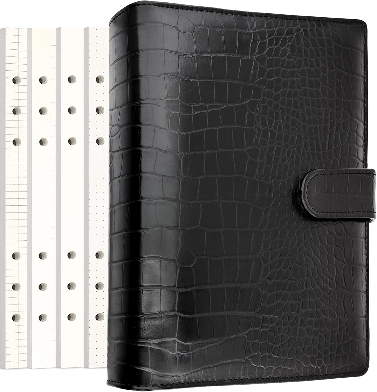 PU Leather Personal Notebook Planner with 67 Pages Loose-Leaf Papers 6 Holes Ring Binder Pen Holder Magnetic Buckle (Red Crocodile Pattern, A6)