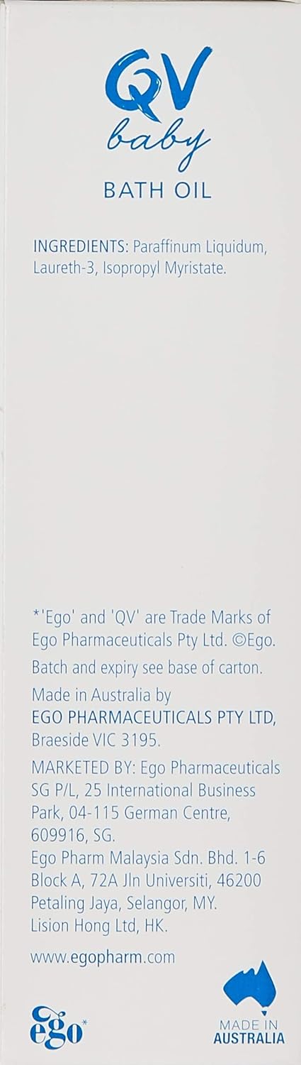 Experience gentle and nourishing care for your baby's delicate skin with QV Baby Bath Oil 250ml. This specially formulated bath oil cleanses and moisturizes, leaving your baby's skin soft, smooth, and protected. Free from harsh chemicals and fragrances, the hypoallergenic formula is gentle on sensitive skin. Enriched with natural oils, it replenishes moisture and creates a protective barrier to prevent moisture loss. Dermatologist-tested and suitable for daily use, this tear-free bath oil provides a luxurious and nurturing bathing experience for your little one.