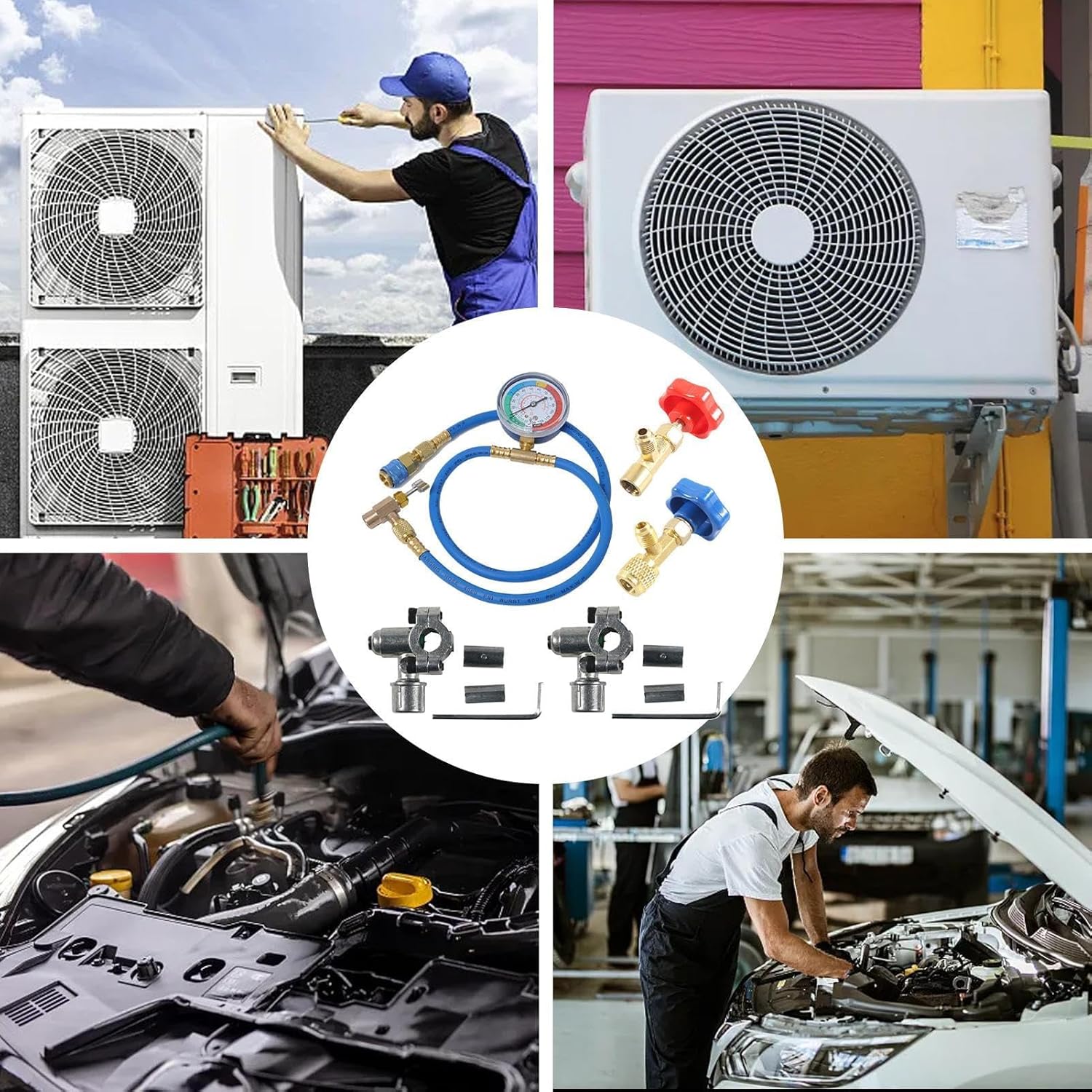 Automotive replacement supplies and accessories tailored for precise car truck and vehicle upkeep at home. Equipped with tools for repair maintenance cooling refrigeration charging recovery testing and diagnostics. Provides effective solutions for automobile wire repairs and leak detection Ideal for ensuring smooth use of your vehicle while addressing common issues with accuracy. Specification: Product name: ac recharge kit Product model: Automobile air conditioning refrigerant filling kit Product size: about 10x3x100cm/3.94x1.18x39.37 inches Product material: Copper Product total length: about 1.15m/3.77 feet Packing List: AC recharge kit x1 set Note: 1. Due to the different display and lighting effects, the actual color of the product may be slightly different from the color shown in the picture. Thanks! 2. Due to manual measurement, a measurement deviation of 1-2cm is allowed.