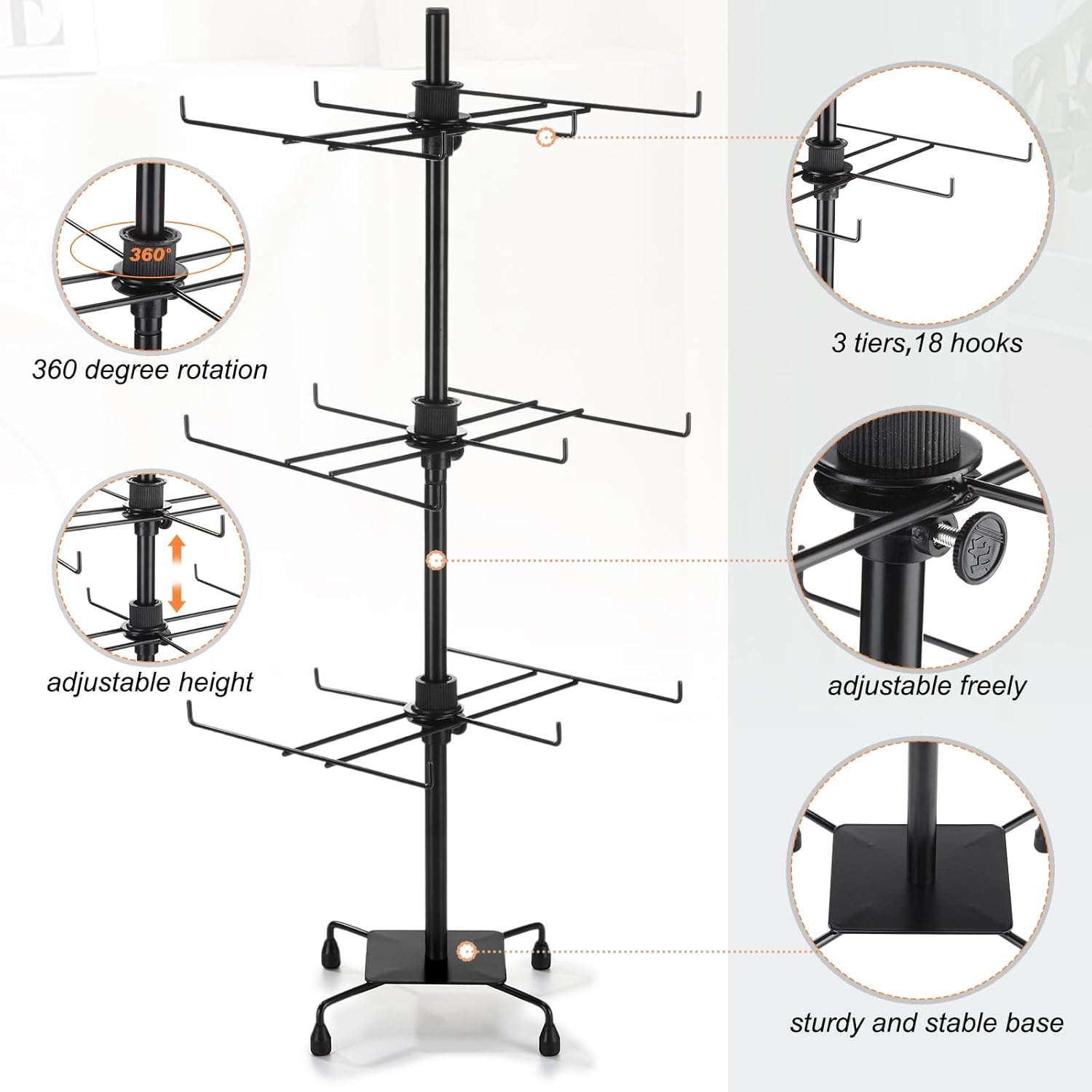 Features: Classic Color, Blends Seamlessly: Their modern color lends these jewelry display stands a classic and versatile look, blending seamlessly into any retail environment or home decor. Whether you want to highlight your favorite pieces or arrange a large array in a small area, these spinning display stands make it possible. Save space: The rotating earring stand is both decorative and practical, which can bring more convenience to your daily life, you can put them in the bedroom and wardrobe to make your room look more tidy. Specifications: Material: metal Color: black Size: 28.3 inches x 9.8 inches / 72 cm x 25 cm Package includes: 2 x Jewelry display stands Notes: Manual measurement, please allow slight errors on size. The color may exist a slight difference due to different screen displays.