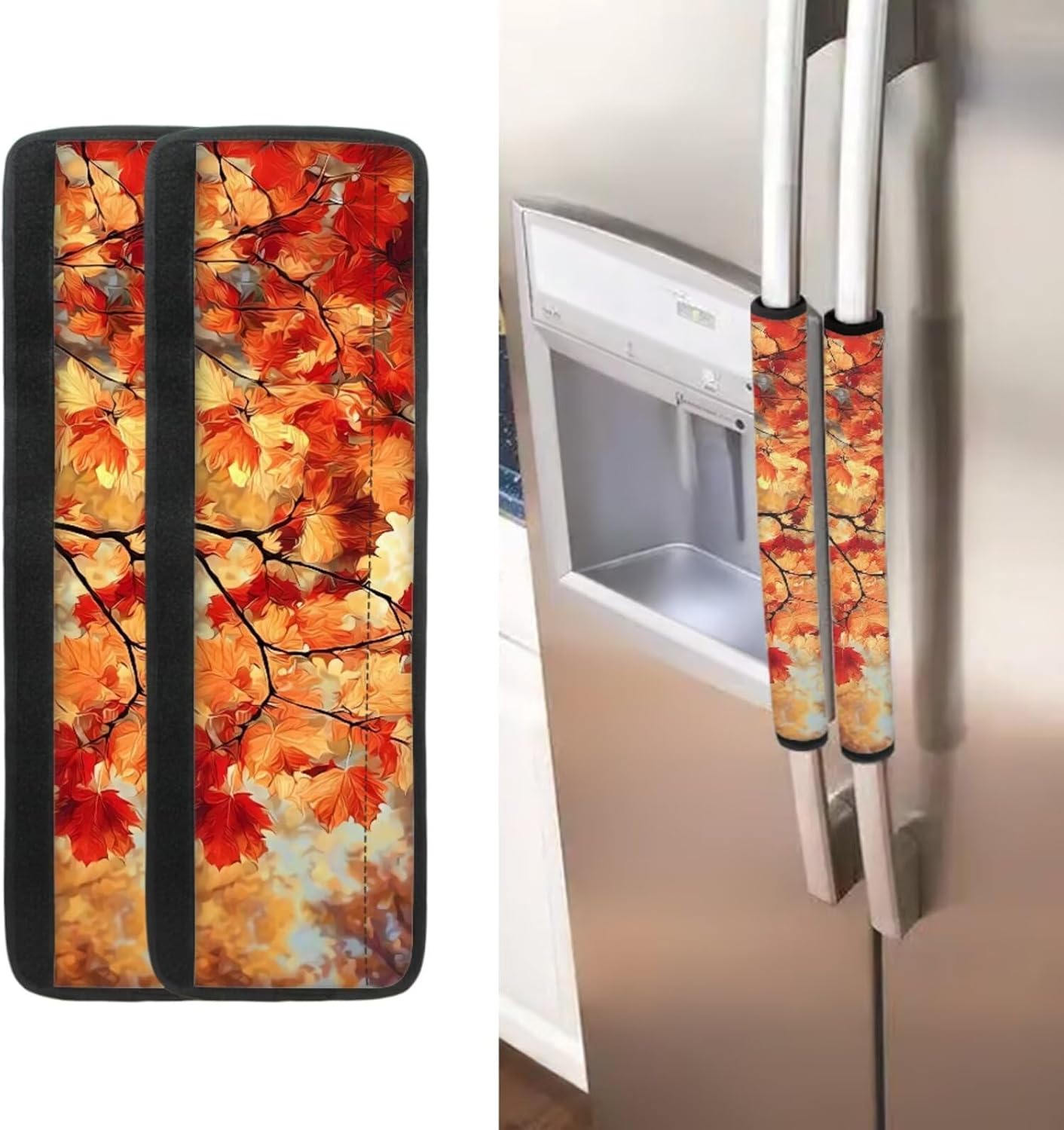 Kitchen Appliance Handle Covers: Made of polyester fabric, non-slip and wear-resistant. the material is stretchy on the width. refrigerator door handle covers are designed with hook&loop, which is firm and not easy to fall off Size: Refrigerator handle covers contain 2 PCS-5.3*12In + 2 PCS-5.3*6.1In + 2 PCS-5.3*16.1In cloth covers Keep Kitchen Clean: Fridge handle covers are designed to keep kitchen appliances handle off from stain, dirty kid hands, water drops and fingerprints Suitable For All Kitchen Appliances: it can be used on handle of fridge, microwave, oven, kitchen cabinet, dish washer and other appliances Washable and Reusable: Kitchen appliances gloves are machine washable or hand washable, environment-friendly. so even if you buy them as holiday decorations, they can still be used the next year Easy to Install: Refrigerator door handle cover set of 6, quickly install and remove, can be used as kitchen decorations for holidays such as thanksgiving, halloween, christmas, easter, new year etc.