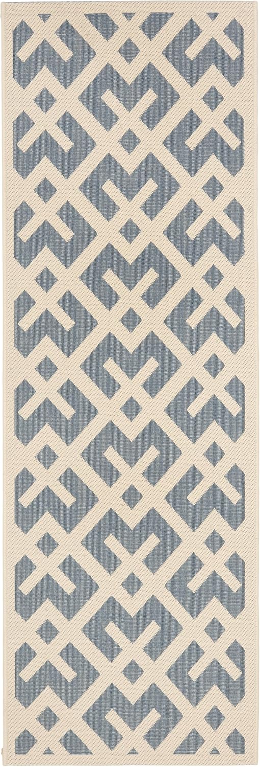 Safavieh's Courtyard collection is inspired by timeless designs crafted with the softest polypropylene available. This rug is crafted using a power-loomed construction and features a main accent color of Blue. Perfect for any backyard, patio, deck or poolside, this rug will instantly turn your outdoor area into a resort-style entertaining space. Finely crafted for seasons in the sun and years of open-air gatherings, the Courtyard rug instantly elevates any interior or exterior décor to a space of visual inspiration. More than a decorative enhancement, this rug is both and -ant to ensure carefree maintenance. With its style, practicality, and transitional decorating options, this rug extends an open invitation to gather and may just spark impromptu parties. Primary Color: blue Pile Height: 0.25 inchesStyle: ContemporaryConstruction: Power-loomedRug Type: Indoor/OutdoorFeature: Latex FreeRug Dimensions: 2'3" x 6'7"