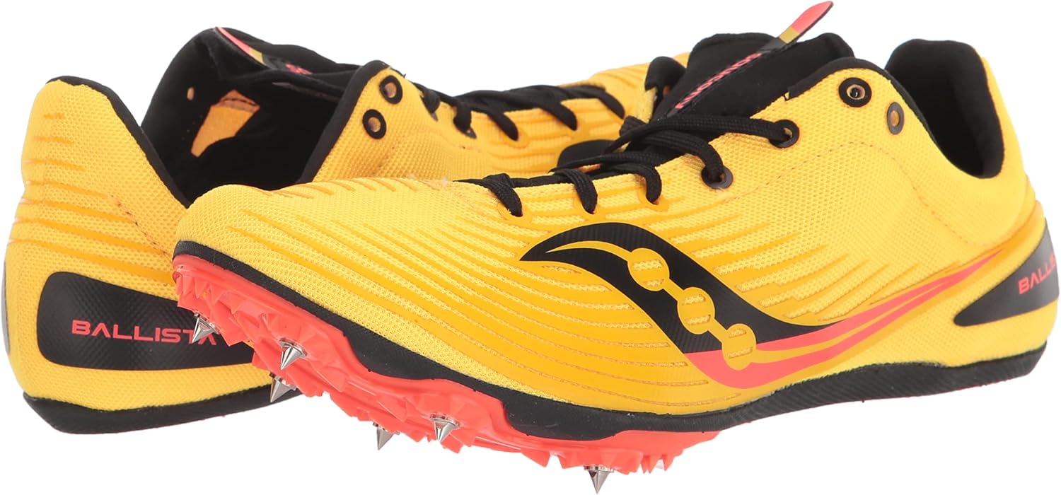 The new Ballista will have middle distance heroes battle-ready more than ever. A new woven upper on this Racing shoe provides the perfect fit to rip the turns and sprint the straights. The spike plate is built firmer for a crisp pop off the toe at top speed.