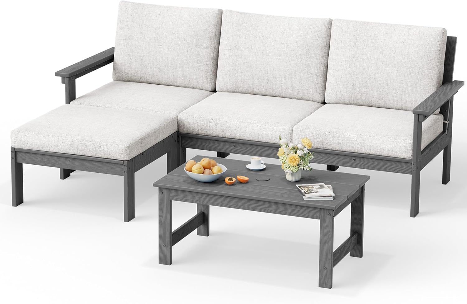 | Included Components | Includes five set cushions, Includes one 3-seater sofa, Includes one coffee table, Includes one side table, Includes two single sofa |