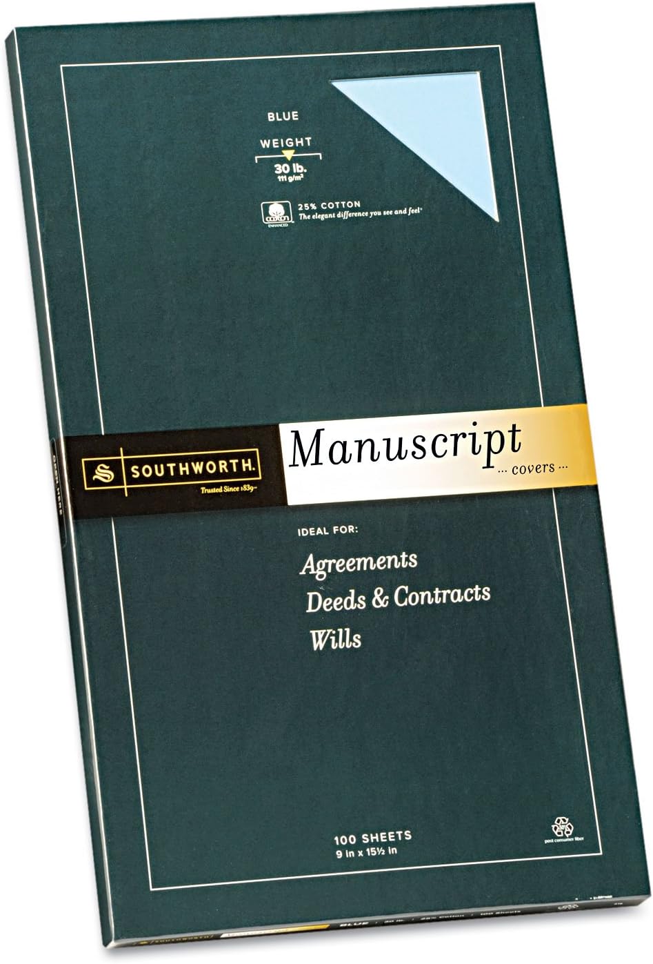 Southworth® 25% Cotton Manuscript Covers are the workhorses of any legal office. They provide protection for all of your important legal documents and feature up to half of their total material construction in post-consumer materials, specifically for court systems requiring paperwork containing significant percentages of recycled content. Get personal with paper! Your choices say a lot about you and your business. The Southworth® collection of business papers is truly among the finest papers available for professional offices of any size. Communicate in style—from the first moment to enduring memory, cotton paper adds a touch of class, making first impressions more impressive with a distinct crispness and an unmistakable feel. Someone picking up your document will know, before they even read a single word, that there’s something special to it. Cotton fiber also provides archival durability—it’s the reason so many historic documents are still with us centuries later.