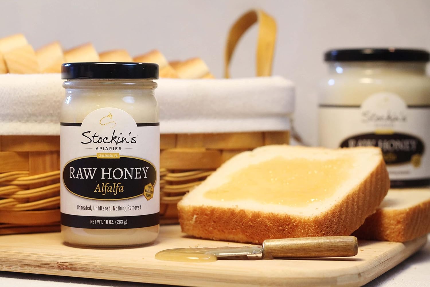 Orchard Experts Brought to you by Kauffman Orchards, this Alfalfa Honey is light in color, and can be described as having a light spicy, floral aroma. This premium raw alfalfa honey originates in the vast alfalfa fields of Canada’s Saskatchewan area. It’s then bottled by the bee experts at Stockin’s Apiaries locally here in Lancaster County, Pennsylvania. Everything about this premium honey - from its light, pleasing, balanced aroma and flavor to its raw state (unheated, unfiltered, nothing removed, nothing added) - speaks of exquisite taste, superior quality, and outstanding nutrition!Sweet and Natural Goodness – This fresh-bottled, naturally crystallized Stockin’s honey is always kept under 108 degrees Fahrenheit to preserve 100% of its enzymes. Enzymes are part of a healthy diet, helping our bodies to function optimally. Note – Raw honey may vary in color, taste, and consistency, depending on the floral sources available to the honey bees.