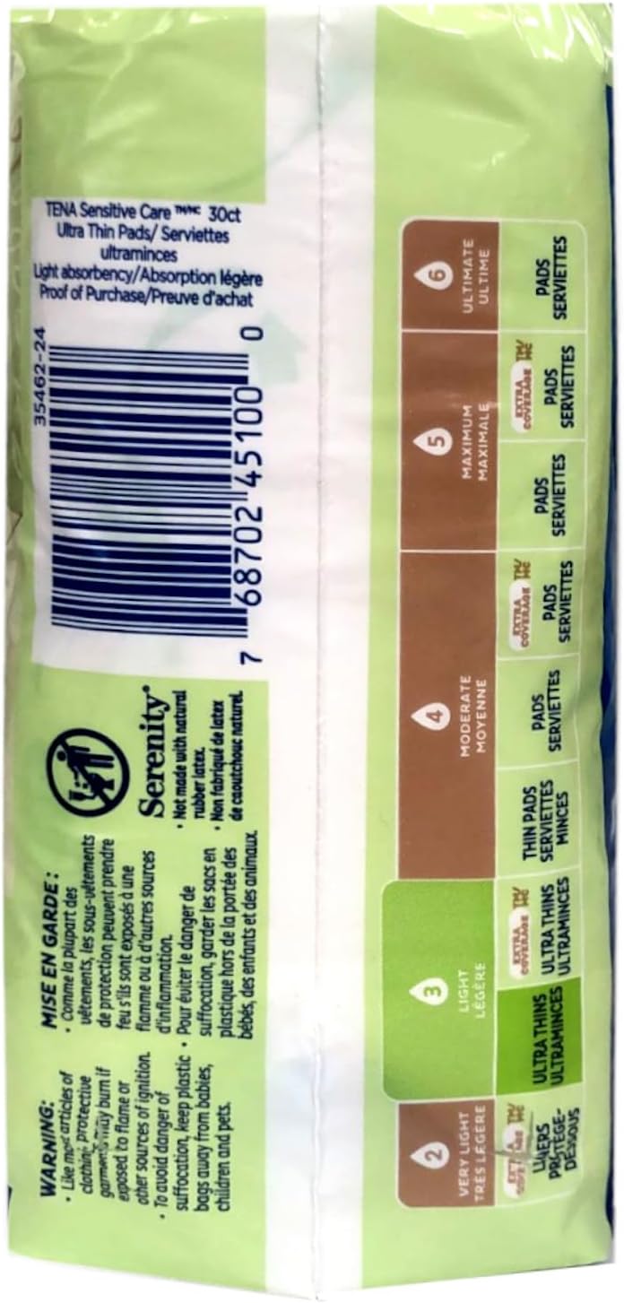 Tena Intimates Ultra Thin Light Regular Bladder Leakage Pads are 100% breathable to help protect your sensitive, intimate skin. TENA's ultra thin incontinence pads are designed for everyday light bladder leaks, drips, and dribbles with triple protection against urine leaks, odor, and wetness. Thin and discreet, our ultra thin light pads will help keep you dry and comfortable.