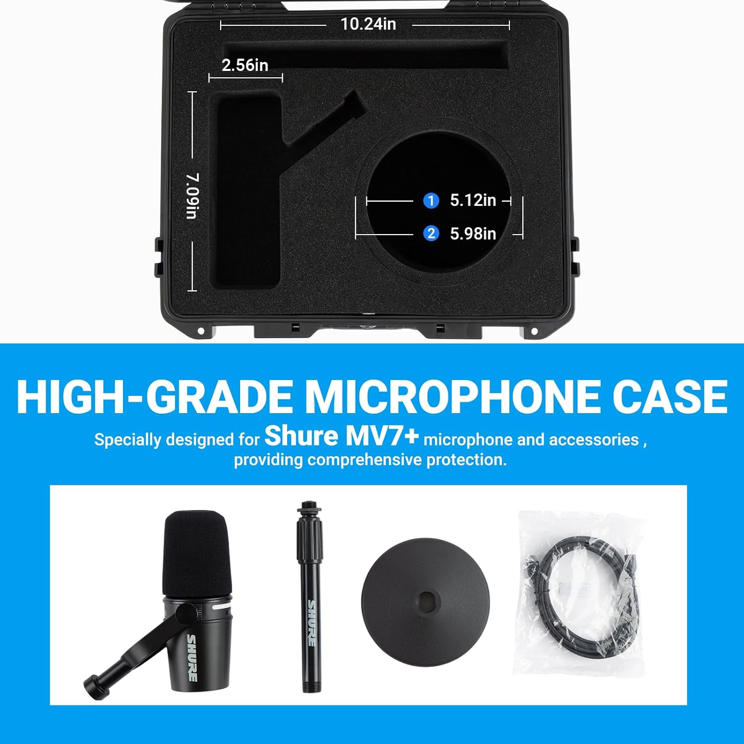 THE TANKENLID case's hard shell exterior is constructed from ultra-durable hard polymer composite plastic, offering maximum impact protection for your Shure MV7+ Microphone. If you want 360 degree protection for your microphone, then this hard shell case's exterior is constructed from dense, composite plastic for superior external protection against blunt forces, drops, dings and other unforeseen mishaps. With the combination of a highly durable exterior and dense foam interior, you can rest assured your equipment is in good hands for storage and protection. Shock-Absorbing, Precutting Foam Interior. Our Hard Case features a thick egg-crate foam top and includes a layer of dense, precutting protective foam. Your microphone will be surrounded well to absorb shock from bumps and drops. This case is ideal for travel with its briefcase-style design and ergonomic carry handle. Whether you're traveling by air, by car, or just need a safe carrying solution for your microphone when moving around the studio, TANKENLID has got you covered. For optimal protection and convenience, we utilize a ingenious latching system on our cases. You should be able to access your microphone easily when you need it, and your case is going to stay closed when you don't need it. This microphone case uses a very durable hinge, which is very smooth to open. Not easy to damage, its quality and durability will exceed your expectations.