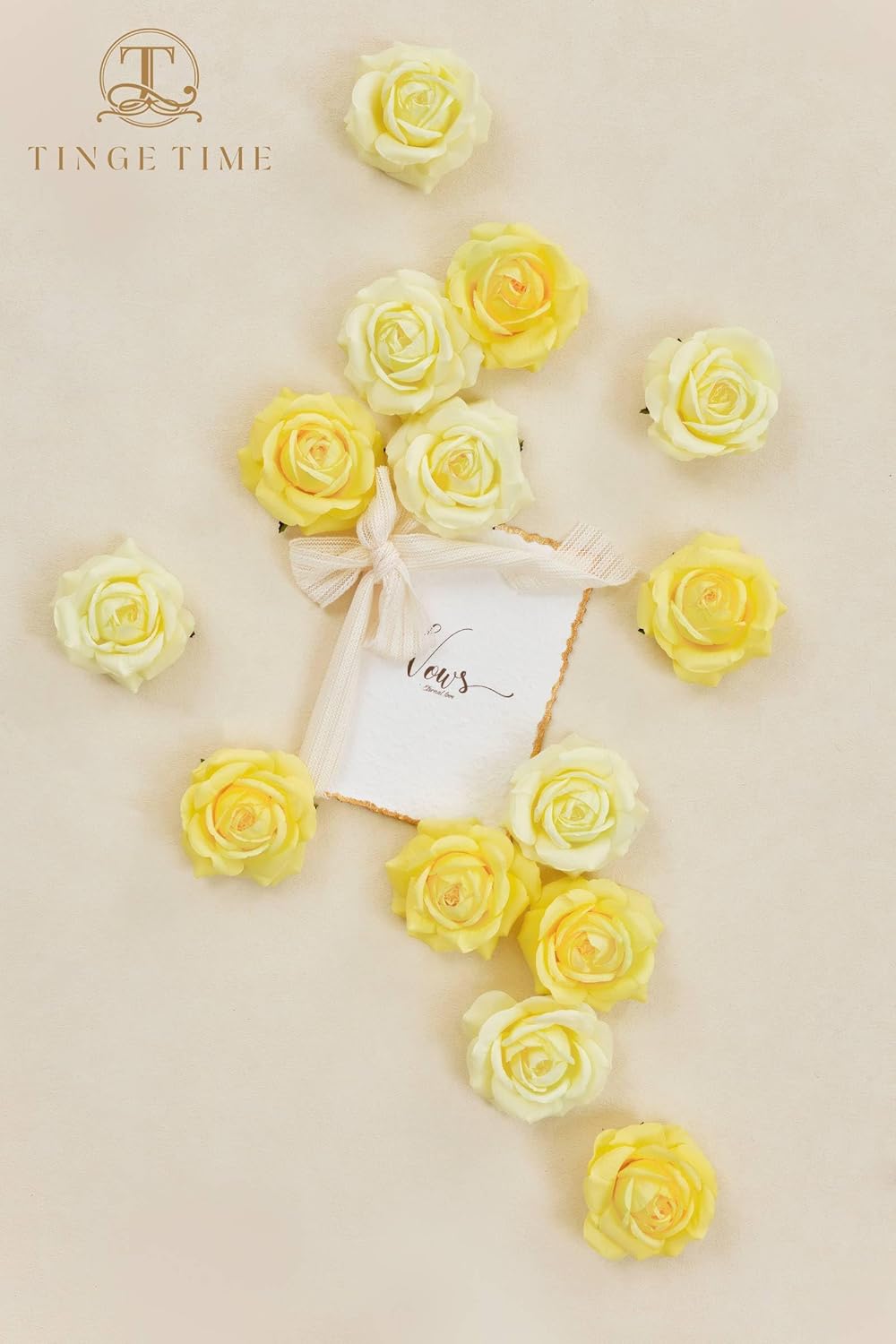 MATERIAL & DESIGN: The TINGE TIME silk flowers box set includes a stunning variety of artificial flowers. Each flower is crafted from high-quality silk, offering a realistic look and soft touch. These artificial flowers mimic the beauty of fresh roses, perfect for any occasion.EASY TO DIY: Our silk flowers come in 16pcs yellow artifiicial rose. This assortment adds depth and dimension to your arrangements, making them appear more lifelike and vibrant. Perfect for artificial flowers for decoration and DIY projects.EASY TO CARE: No need to water, no dead leaves, and they are easy to clean and dust. These artificial flowers are long-lasting, not easy to fade, and can be stored and used repeatedly.Versatile Use: The TINGE TIME silk flower box is perfect for creating DIY bouquets, centerpieces, kissing balls, boutonnieres, and any other floral decorations. Ideal for weddings, parties, baby showers, or home décor, these fake flowers bring elegance to every setting.Included Greenery: Each box comes with 6 complimentary rose leaves to enhance the realism and beauty of your floral arrangements. These additional elements make our artificial flowers even more appealing and authentic, ensuring your decorations look stunning.WARM TIPS: The TINGE TIME fake flowers come in a secure box to prevent them from getting smashed. When you open the box, the flowers may appear slightly flattened, but you can easily fluff them up using a steamer or a hairdryer.