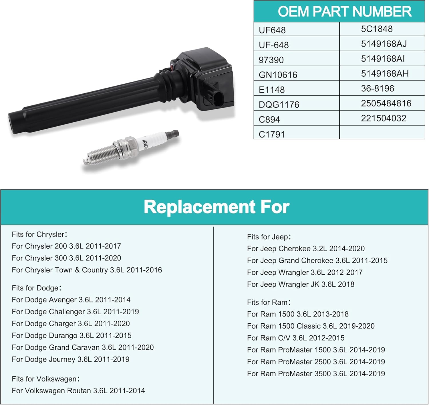 | Part Interchange Info | Direct replacement for ignition coils with part numbers UF648, 97390, GN10616, E1148, DQG1176, C894, C1791, 5C1848, 5149168AJ, 5149168AI, 5149168AH, 36-8196, 368196, 2505484816, 221504032, 0221504032, NGK 97390 in compatible engine applications. |