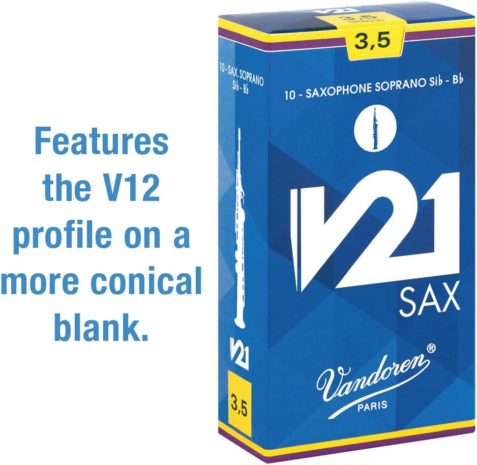 The Vandoren V21 soprano saxophone reed is Vandoren first conical shaped reed for saxophone and incorporates the profile of the famous V12.