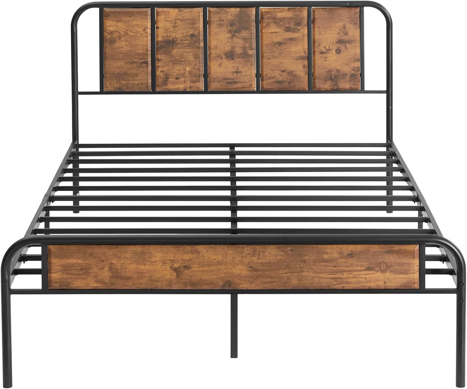 What are our advantages? NO Boxing Spring Needed Cost Effective 35'' height of headboard 12.4 in under bed clearance Enhanced Metal Legs Excellent Special Customer-Service Bed Frame Color: Vintage BrownMax Load: 350 lb(T), 600 lb(F), 660 lb(Q)Package Includes: 1 x Bed Frame1 x Instruction1 x Assembly KitTips: Do not tighten screws until fully assembled.Make sure the legs remain in contact with the ground. Mattress is not included.Check all screws or bolts are tightened and inspect regularly.