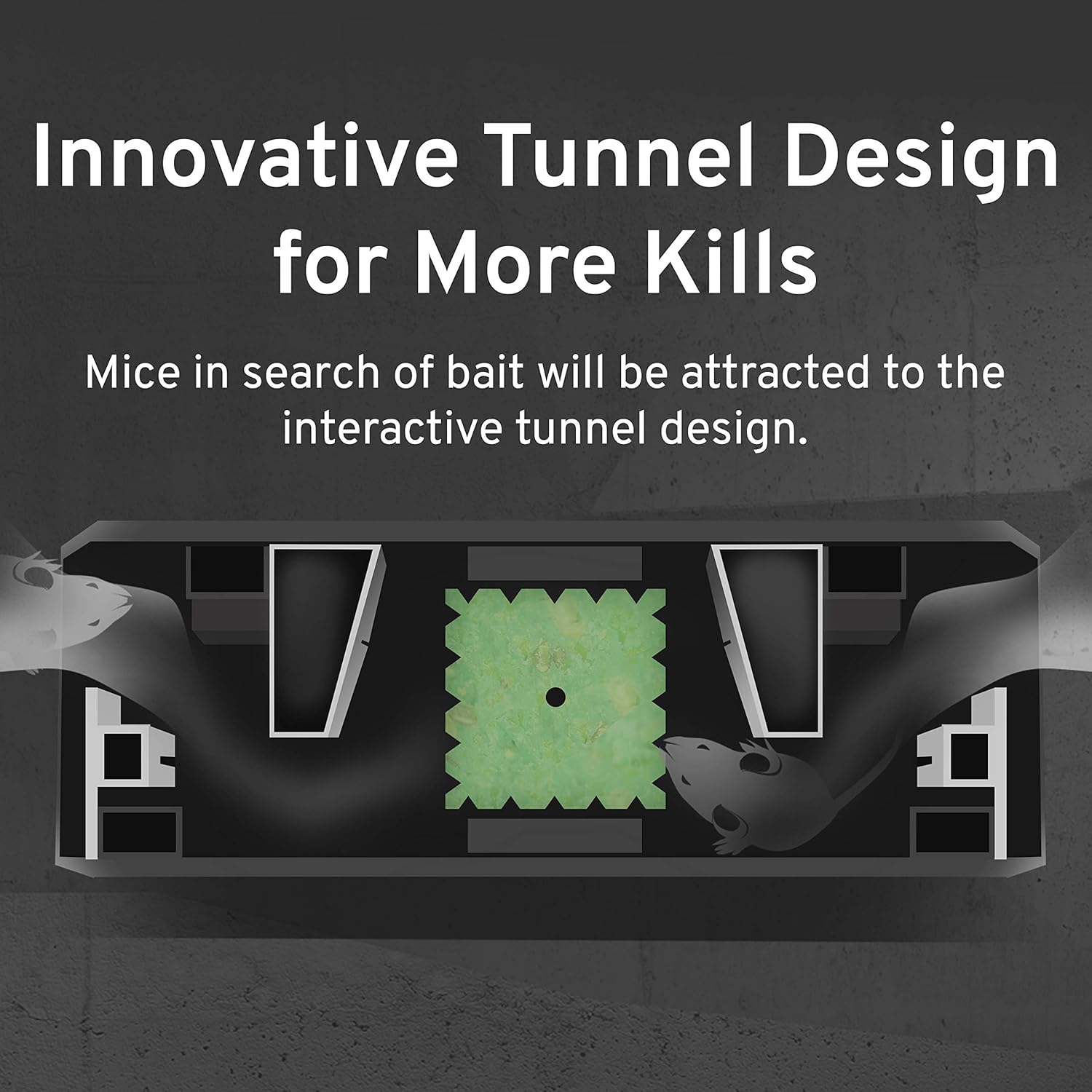Do you have an on-going issue with mice around your property? Victor Fast-Kill Brand Refillable Mouse Poison Bait Stations have got you covered! The bait station arrives pre-filled with a single-feed non-anticoagulant rodenticide, so that it’s ready to use upon opening the package! The bait is made of high-quality ingredients that rodents find incredibly palatable, so it’s easy to attract them to the bait station. To use, simply place the bait station in areas of high rodent activity! The dual-entry tunnels are designed with rodent travel habits in mind, encouraging interaction with the bait station and allowing easy access to the bait. Thanks to the unique formulation, rodents will stop feeding after eating a lethal dose. This allows you to control more rodents with less bait! When the bait is depleted, simply open the bait station and use the included gloves to refill with a new bait block. For peace of mind, this bait station is constructed with a child-resistant plastic housing that locks into place to prevent it from being easily opened. Interior beveled columns also prevent small fingers from reaching in and touching the bait.