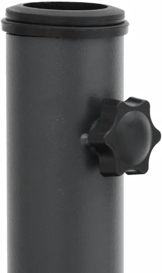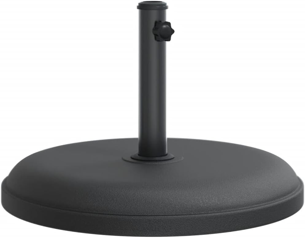 This parasol base offers a sturdy and reliable foundation to ensure your umbrella remains stable and upright.Strong and stable base: This umbrella base features a durable plastic shell filled with concrete, ensuring exceptional stability to keep your parasol securely in place and prevent it from tipping over, even in windy conditions.Easy to install: This parasol stand has a tightening knob for securing your umbrella to the base more firmly.Compatible with multiple pole sizes: This umbrella stand comes with 3 pole adaptors, allowing it to fit umbrella poles with a diameter of 1.3", 1.4" and 1.5".Color: Dark grayBase material: Plastic and concreteTube material: IronBase dimensions: 19.5" x 12.6" (Diameter x H)Tube dimensions: 2" x 9.6" (Diameter x H)Suitable pole diameter: 1.3"/1.4"/1.5"Weight: 55.1 lbWith single knobAssembly required: YesCalifornia Proposition 65