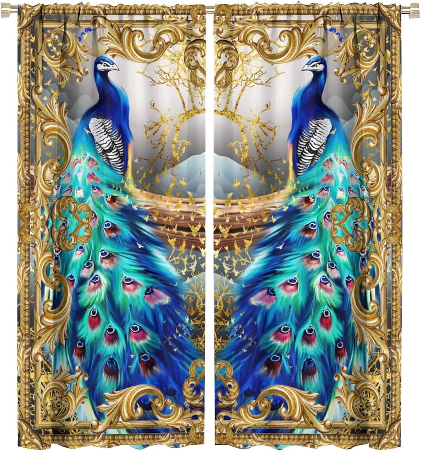 This Watercolor Peacock Flower Curtains can block out 85%-99% sunlight and UV ray ( Darker colors work better), perfect for late sleepers and afternoon naps. Our energy saving curtains insulate against summer heat and winter chill to balance your room temperature, reduce outside noise .This Watercolor Peacock Flower Curtains liven up your indoor or outdoor spaces with a sense of airiness and beauty.These Watercolor Peacock Flower Curtains are suitable for the bedroom, living room, dining room, infant room, kids room, office or other public place.Material:Polyester high quality fabric curtains, warm and interesting, beautifully designed.Kindly Remind:- Don't use sharp things scratching curtains.- For proper fullness panels should measure 1.5-2 times the width of your window.- 24 Hours customer support.- As different computers display colors differently, the color of the actual item may vary slightly from the above images.