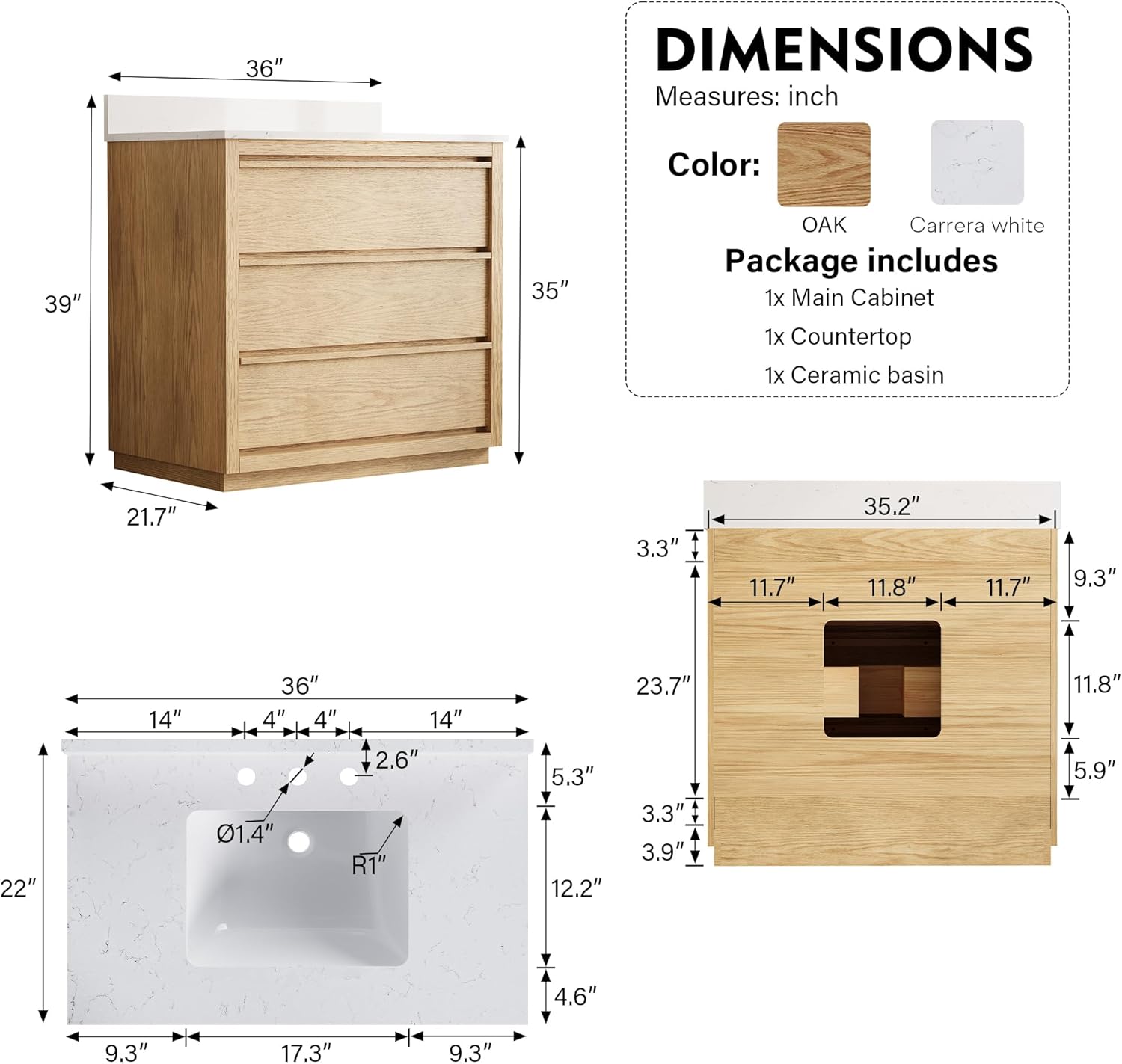 | Included Components | 1x Ceramic Basin, 1x Countertop, 1x Main Cabinet |