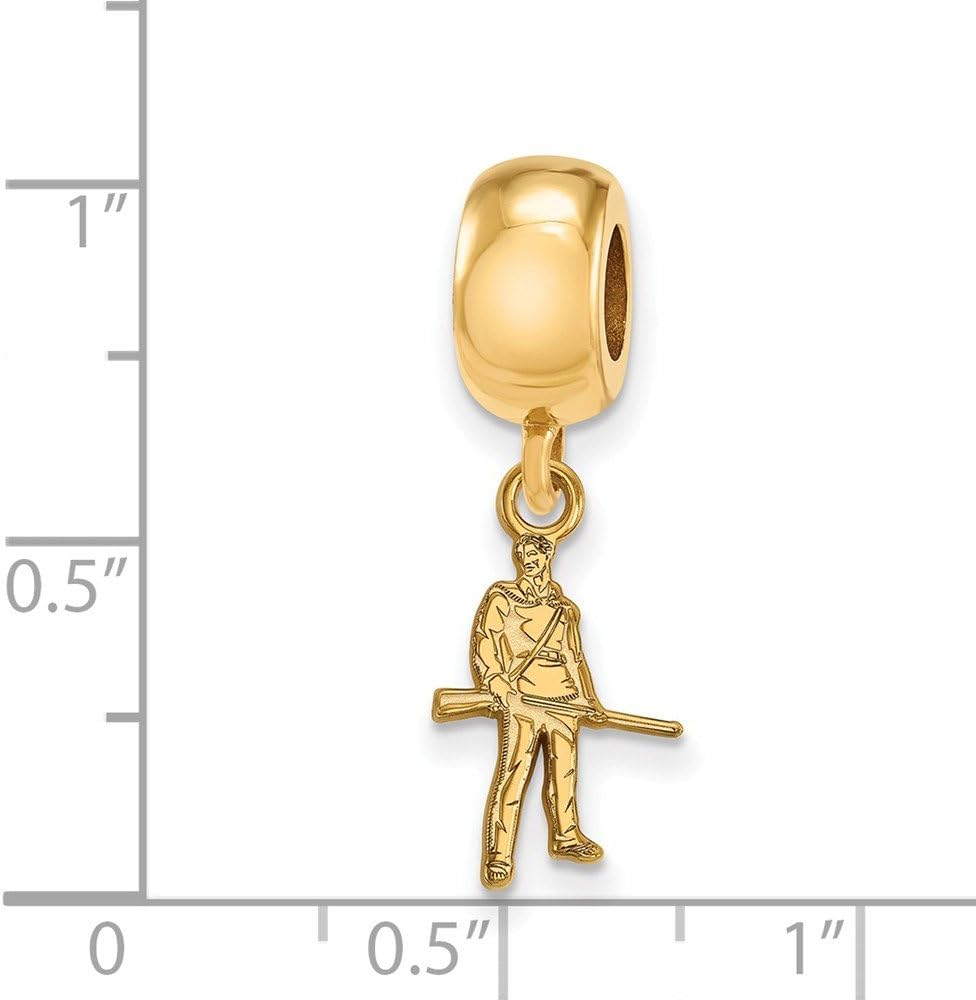 This attractive Logoart Sterling Silver Gp West Virginia University Extra Small Dangle Bead Charm, crafted in Gold Plated Silver . This design measures 8.00 mm wide, 25.00 mm long.