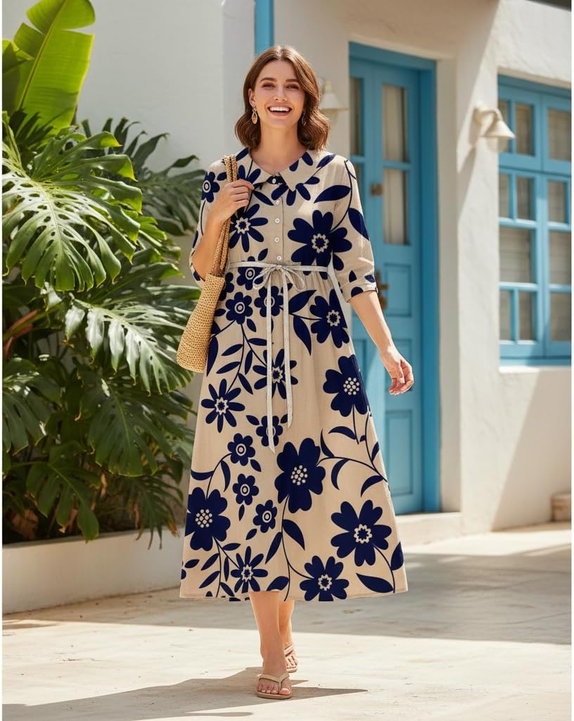 ------------------------------------------------------------------Welcome to TIAFORD------------------------------------------------------------------ Title:. Details: Category:Dress. Neckline:Lapel Collar. Dress length:Long dress. pattern:Flowered Floral Printed. Theme: Spring, Summer, Fall. Thickness: Lightweight. Occasion: Daily,Work,Shopping,etc. Material:polyester. Season: Suit for spring/summer/fall. Package: 1 x dress. Notes: 1. Since everyone has their own body shape and measurements, we recommend that you compare your own with our size chart before purchasing. 2. According our customers suggestion, so we enlarged the size, please choose the size you wear usually. 3. If you have any questions, please inform us. Advantage: 1. Very easy to take care of but comfortable and nice to wear anywhere. 2. So cute and comfy. Slip on, stretchy, lightweight material but not see through. Can dress it up or down. Can pack and won’t wrinkle. 3. use it as a summer dress in hot weather.